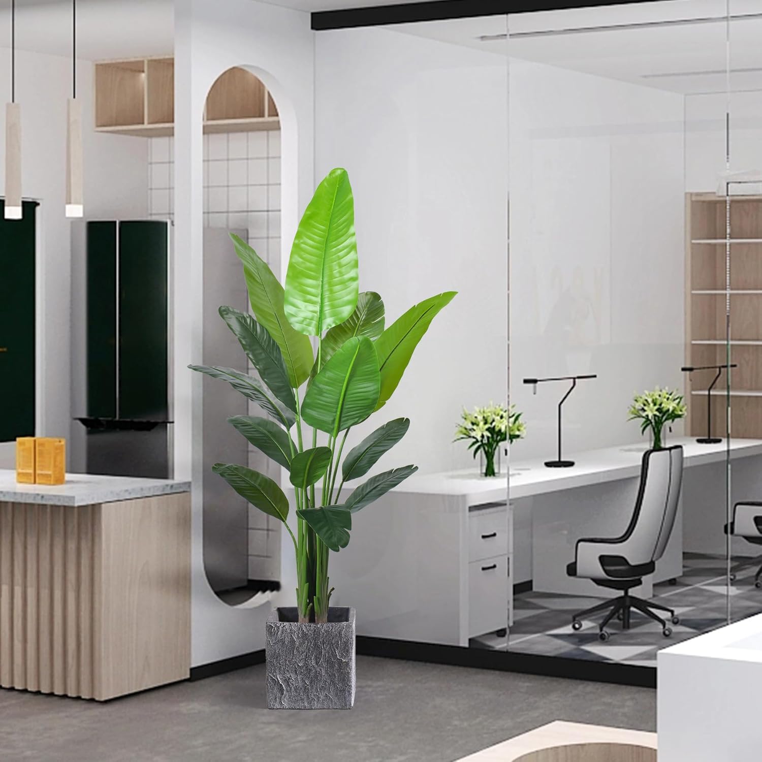 - 【Three Size Available】Our artificial bird of paradise tree have three size available;4ft、5ft&6ft,6ft faux plants with 13pcs real touch leaves, 5ft faux plants with 10pcs real touch leaves ,4Ft faux plants with 9pcs leaves.you can choose different sizes of fake floor plants to decorate your house.