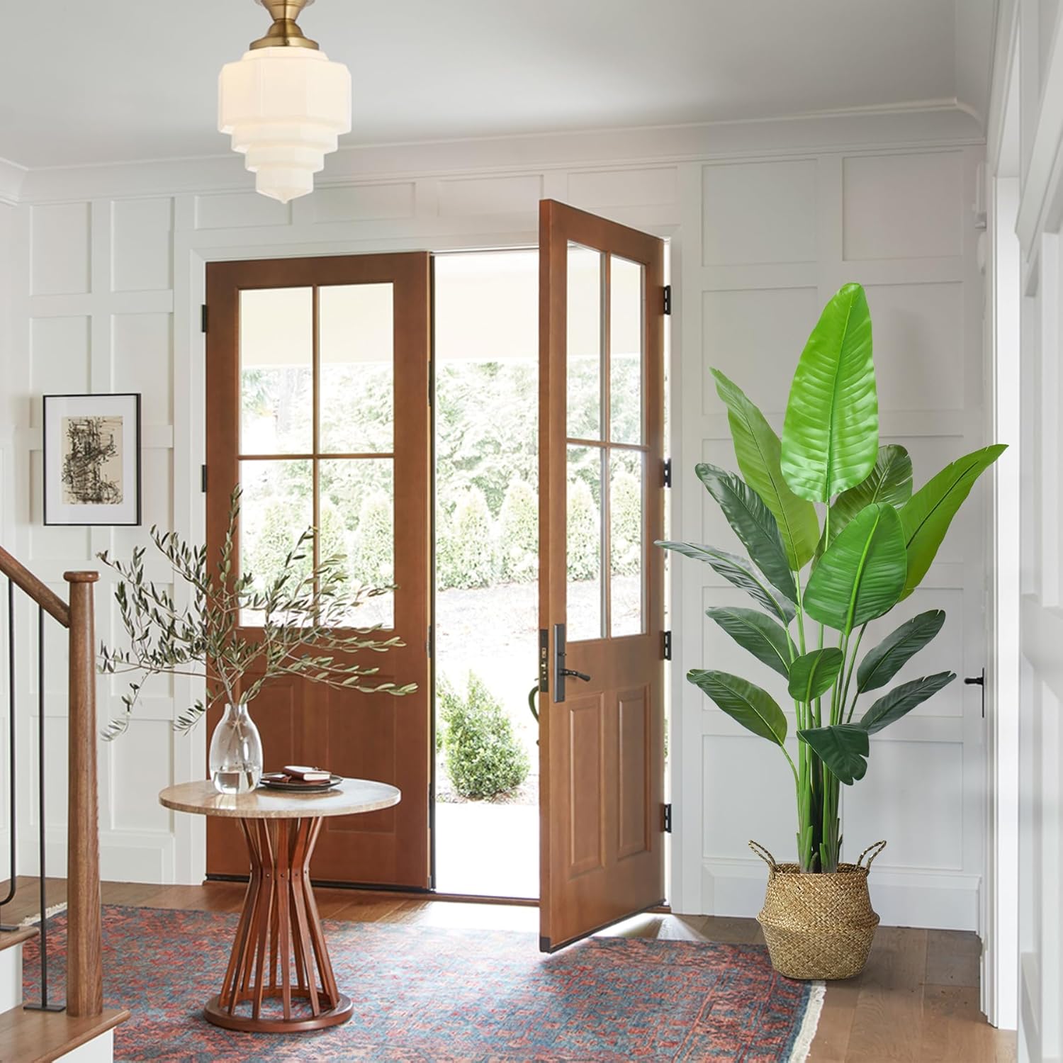 - 【Gorgeous Artificial Plant】Artificial plants fake tree are all selected from nature.this bird of paradise artificial plant have real touch leaves,please insert the branch and then gently bend the leaves to make them full,you will get a lifelike tree,let you feeling romance and beauty of nature without leaving home.