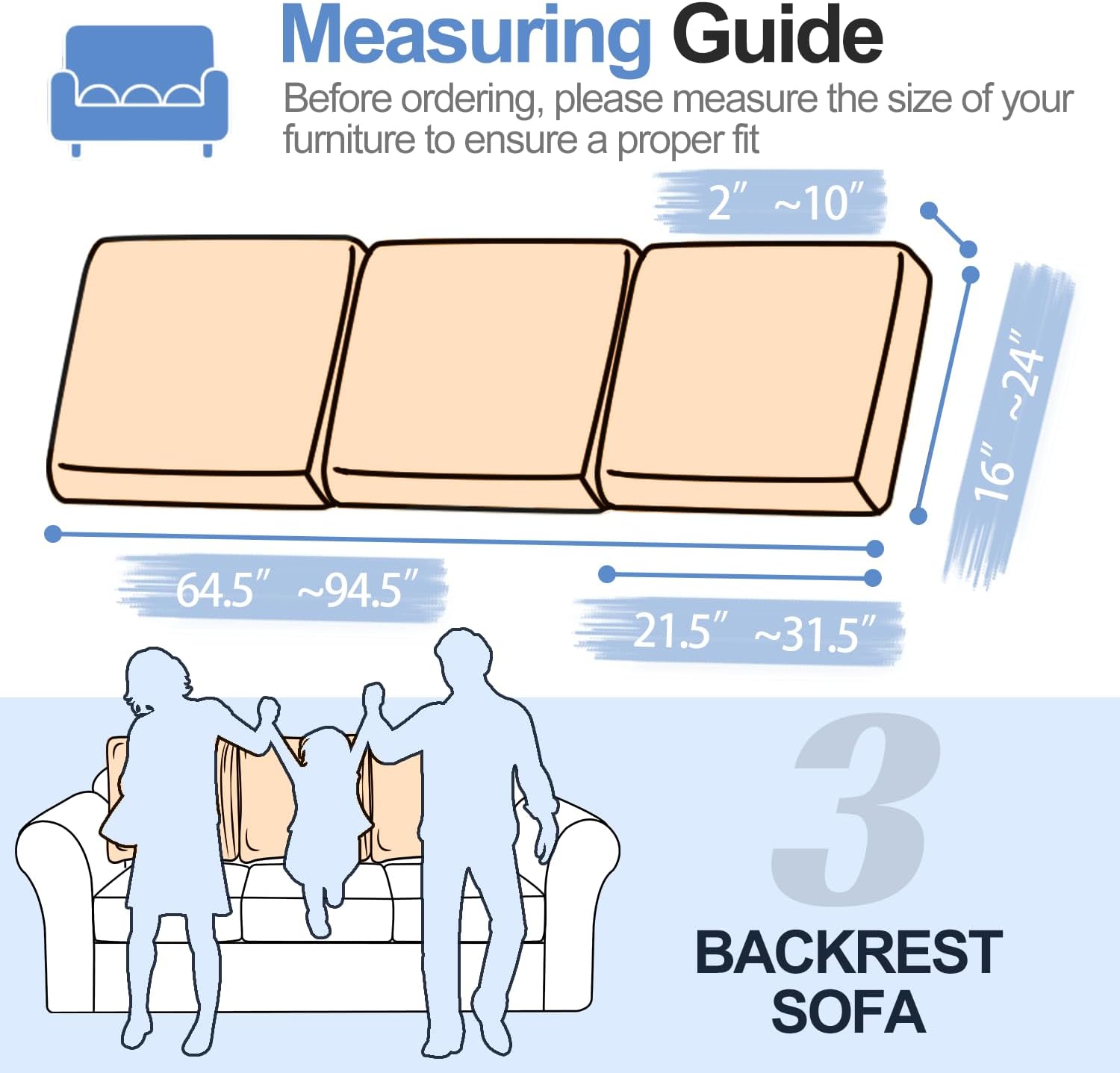 - 【Easy to install】These couch backrest cushion covers are incredibly easy to install and can be completed within just a few minutes. It comes with elastic bands that securely fix the cover to the sofa, ensuring it stays in the right position. Before placing your order, we highly recommend that you measure the size of your furniture to ensure a perfect fit. These covers are suitable for both T-cushion and Box cushion styles and are highly recommended for use with both leather and fabric furniture.