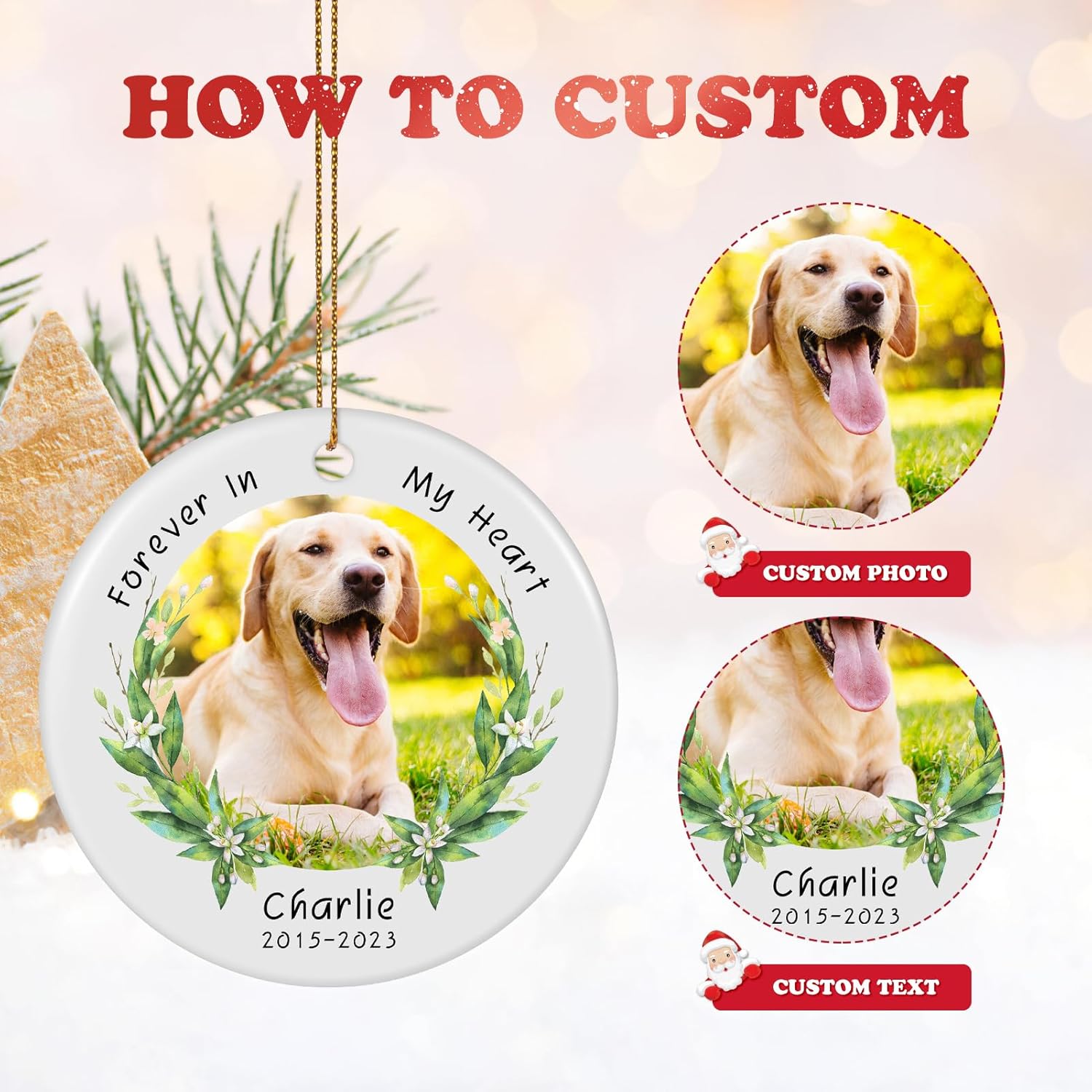 - MEANINGFUL MEMORIAL DECORATION: Enhance your holiday décor with a custom pet ornament that fits beautifully on your Christmas tree or as part of your home decorations. Its timeless design complements any holiday theme, making it a versatile accessory.