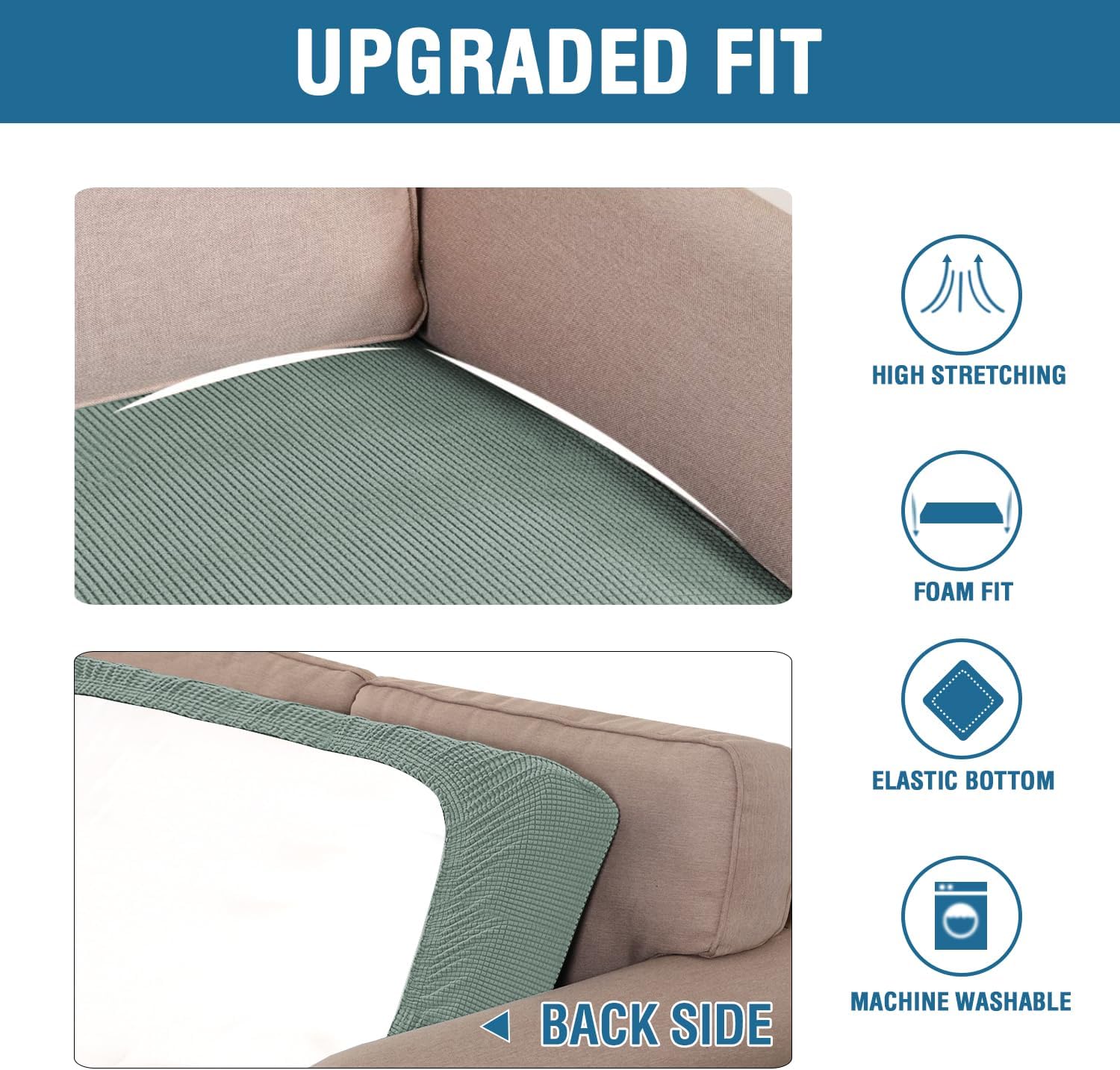 - NON SLIP: Effortless for installation (guide photos on selling page), sewn with thick elastic loops to cover the bottom edges. It is easy to install and take off, making your home more harmony, high recommended for both leather and cloth furniture