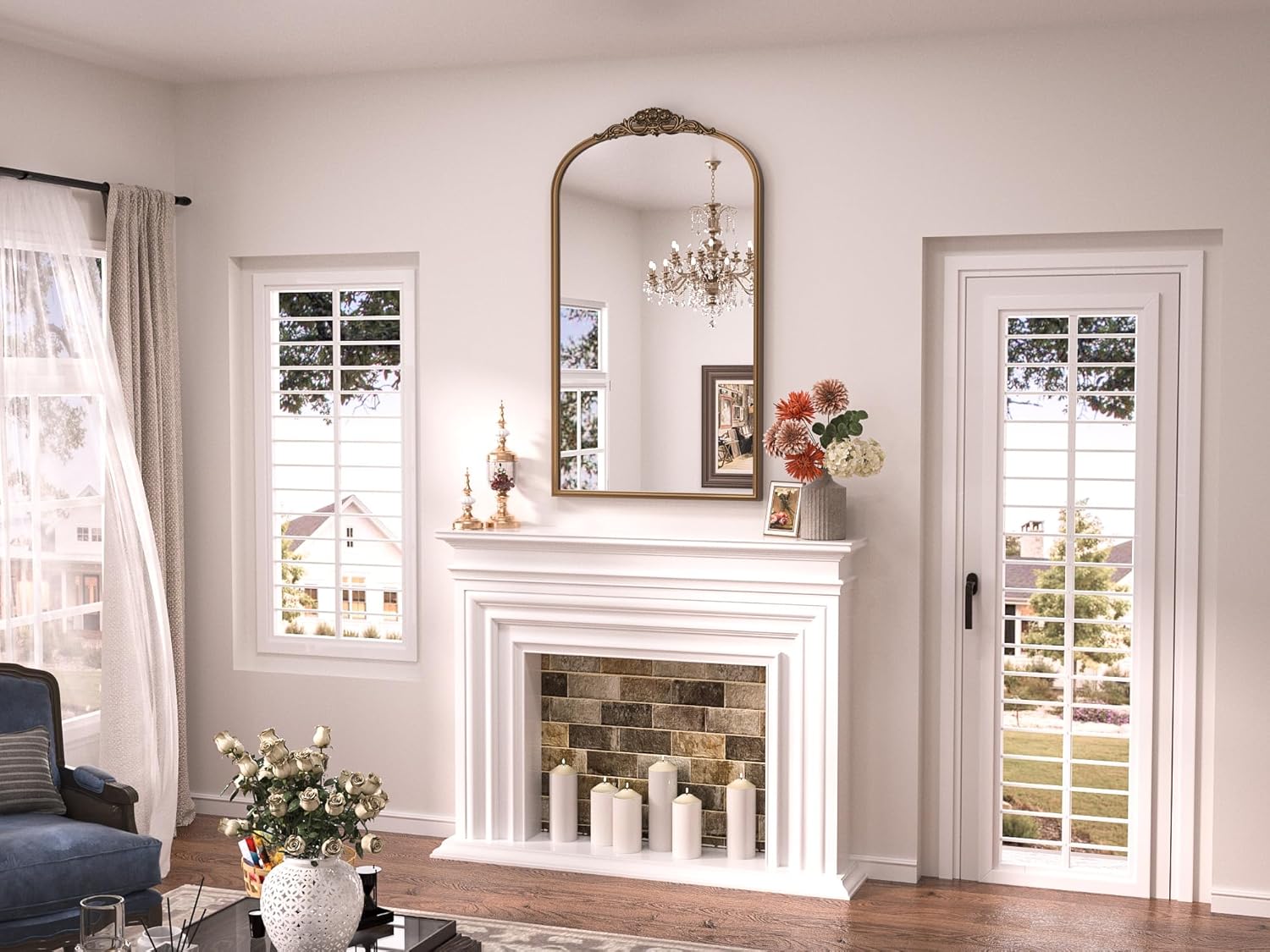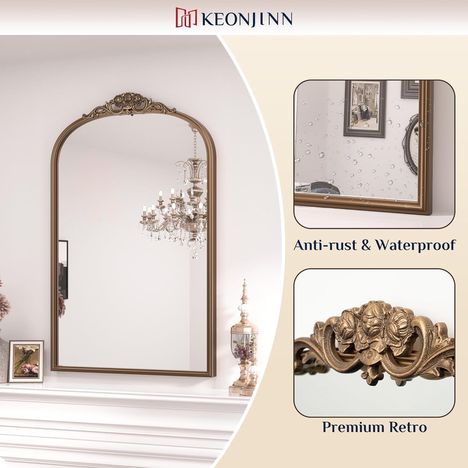 - 【Elevate Your Space with Baroque Grandeur】The Keonjinn Vintage Mirror is a masterpiece of timeless elegance, channeling the lavish artistry of the Baroque era. Its sweeping arched silhouette, adorned with an intricately carved wooden floral crown, transforms walls into canvases of historical opulence. Perfect as a statement centerpiece, this mirror infuses rooms with regal charm and a touch of old-world drama.