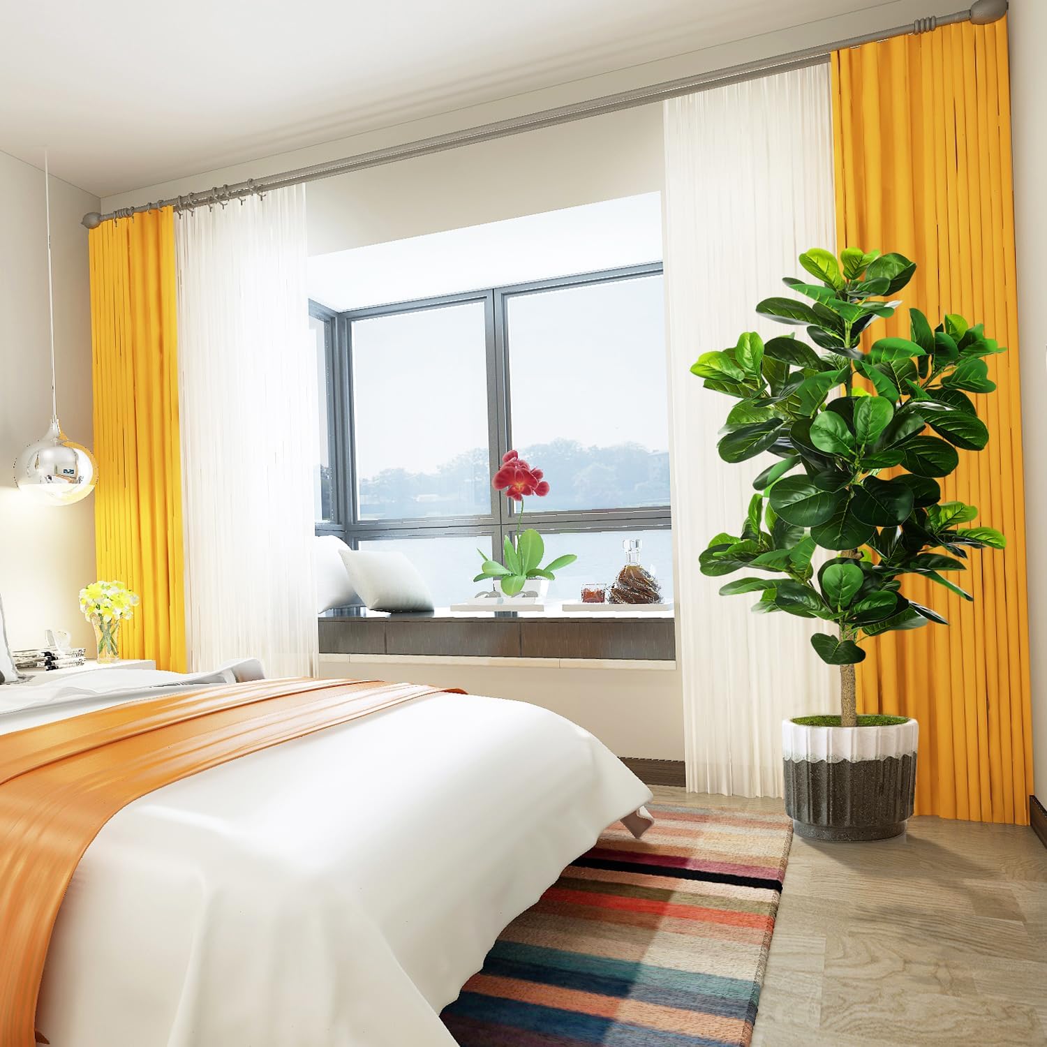 - 【BEST DECORATIONS】 Carefully crafted to mimic the appearance of a real-life Fiddle Leaf Fig Tree, looking as close to reality as possible, perfect for any room or office and outdoor decor, this fake fig tree will let you feel the presence of nature. All seasons are green. Perfect housewarming gift.