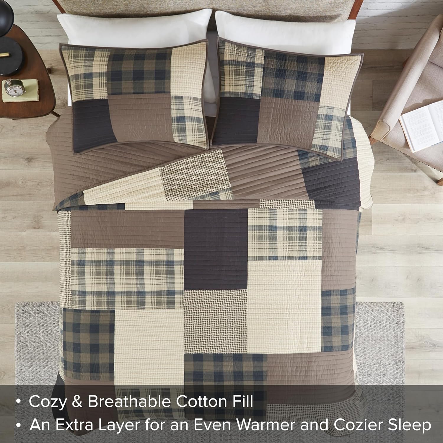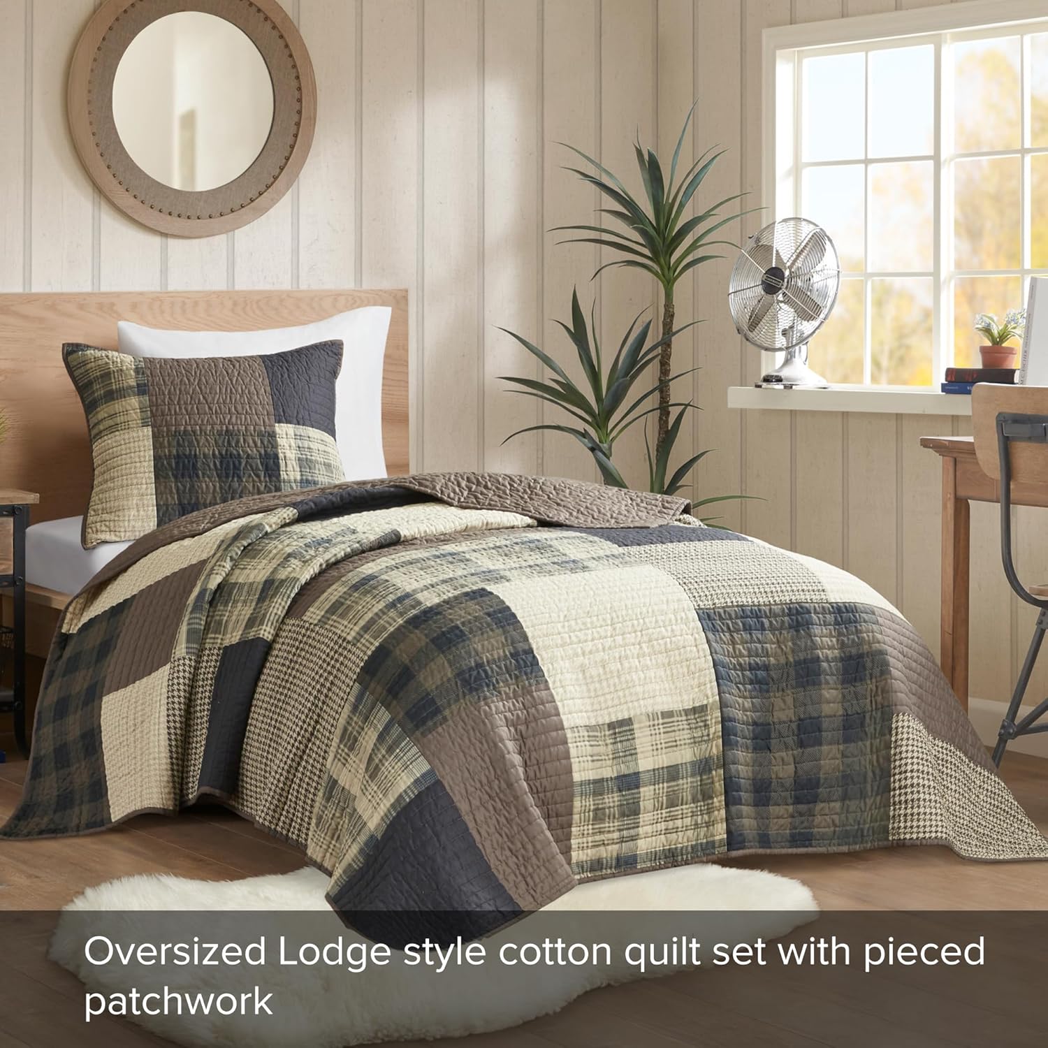 - Cabin Lodge Quilt Set - Oversized Lodge style cotton quilt set with pieced patchwork for a classic and cozy update to your bedroom