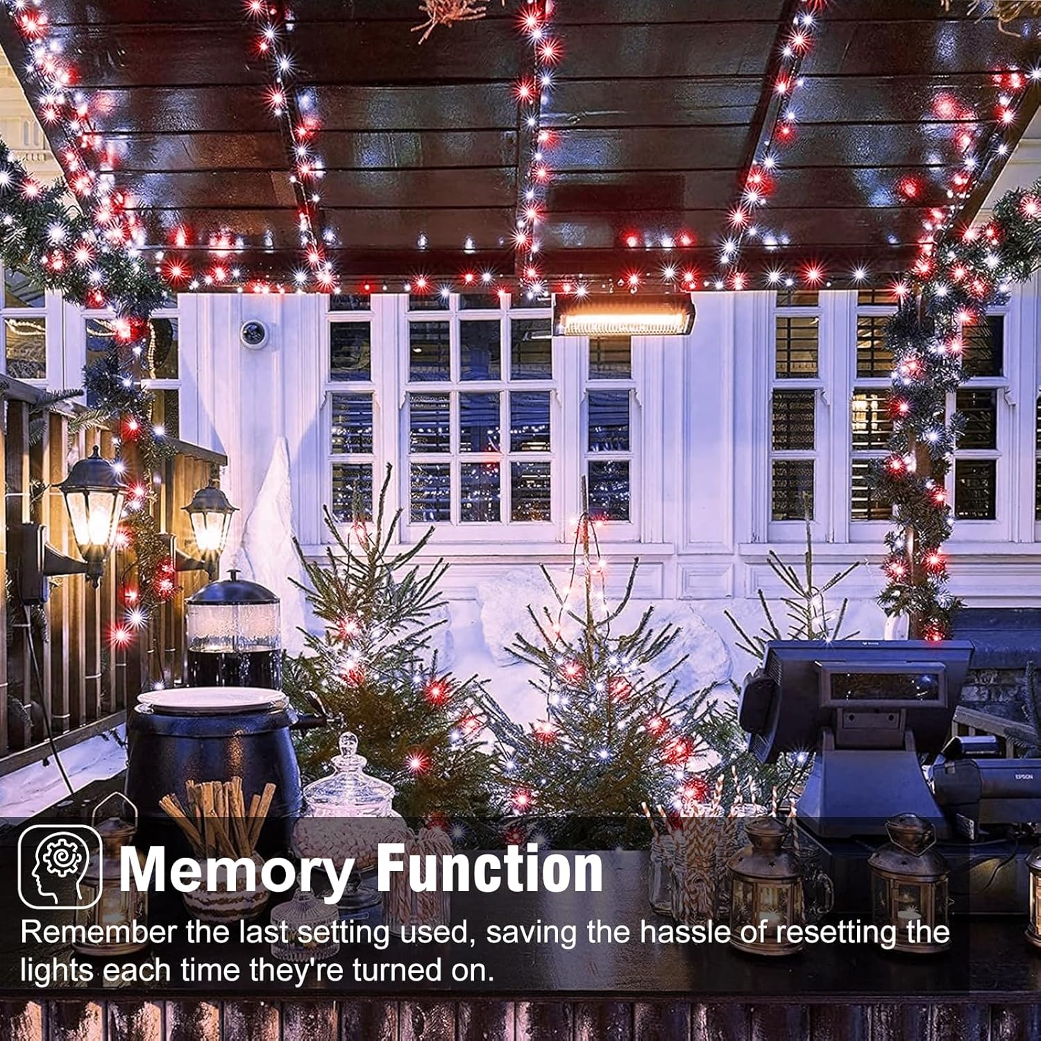 - Ideal for Christmas Decorations: The IP65 waterproof Christmas lights outdoor can withstand all kinds of weather, ideal for year-round use. These twinkle lights for Christmas tree are fabulous decorations for your garden, bistro, balcony, terrace, pergola, gazebo, tent, pool umbrella, cafe, bedroom or other occasions. But please note that plug not waterproof.