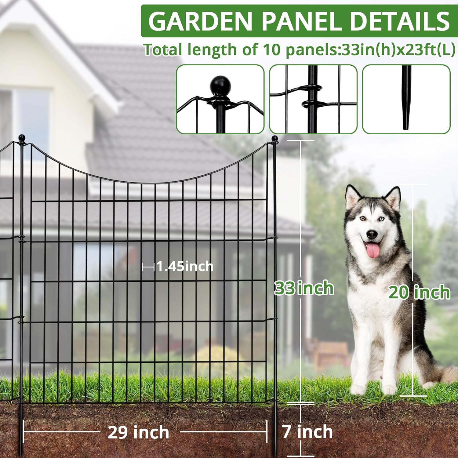 - ENHANCE AESTHETICS & VERSATILITY - With a classic curved design, these fences complement any garden style and. They are perfect for defining garden borders, protecting flower beds, and vegetable patches from pets, children, and wildlife, creating a safe play area or serve as a temporary fence to contain large pets. Additionally, it can enhance the beauty of roadside green belts or observation decks