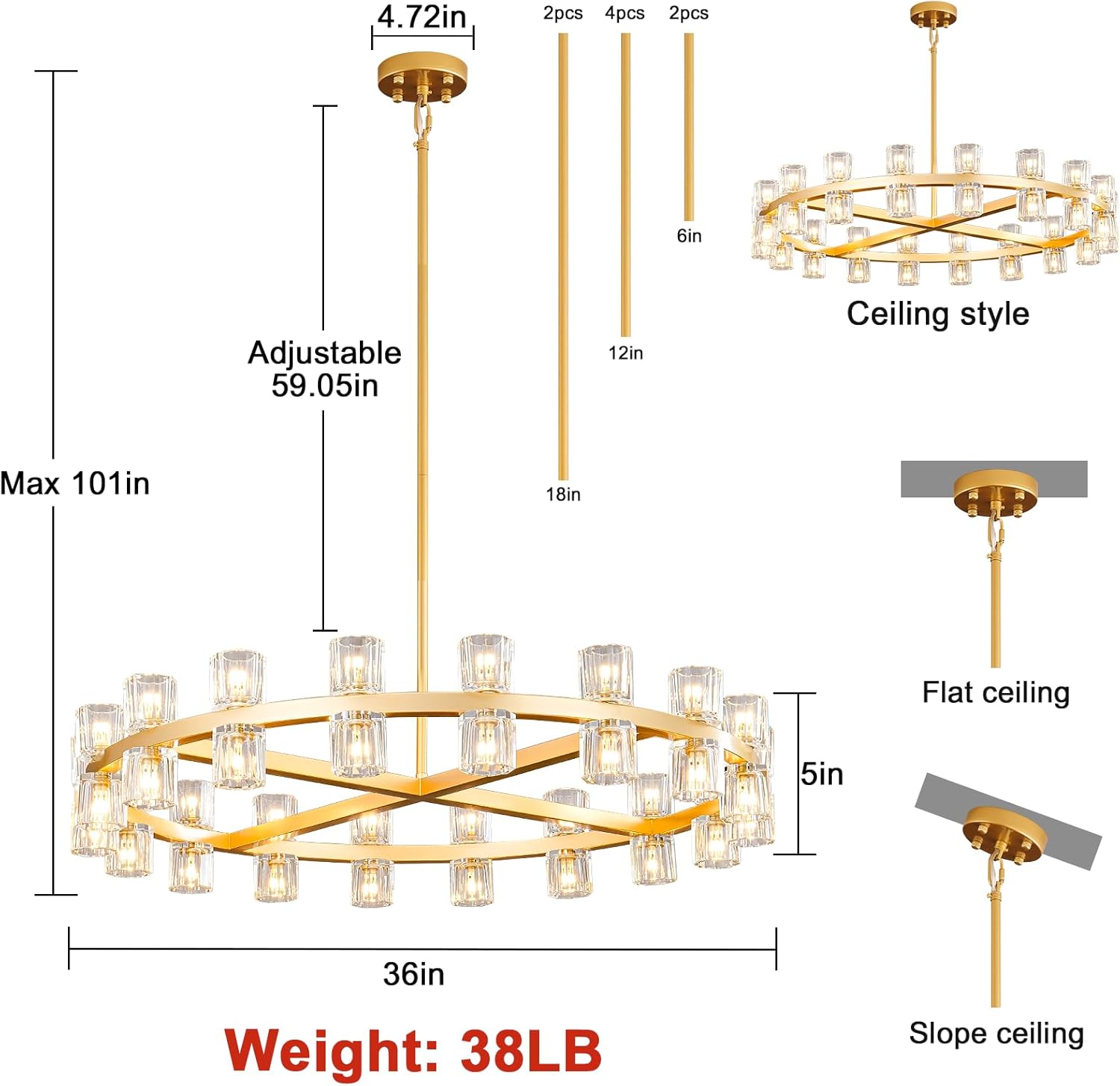 - Easy Installation & Warranty: Designed for convenience, our gold crystal chandeliers comes with easy-to-follow instructions, making installation a breeze. Plus, with our reliable 3-year warranty and responsive customer service team, you can purchase with confidence, knowing that we've got you covered.