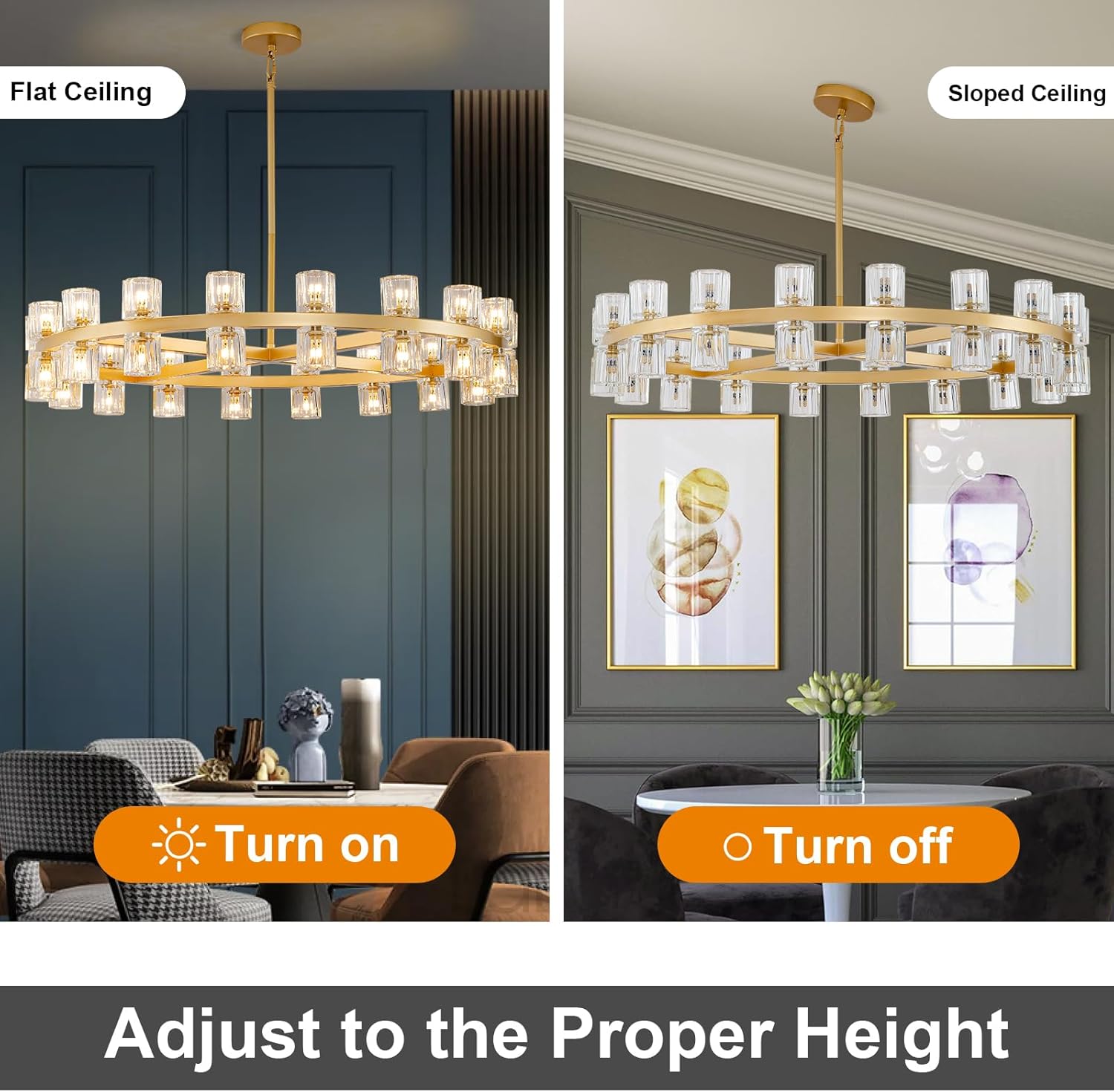 - Wide Application: Modern round chandelier for dining room suitable for your restaurant, kitchen island, bathroom, stairs, bedroom, living room, library, foyer, hallway, dining room.Supports ceiling style,flat ceiling, and sloped ceiling.
