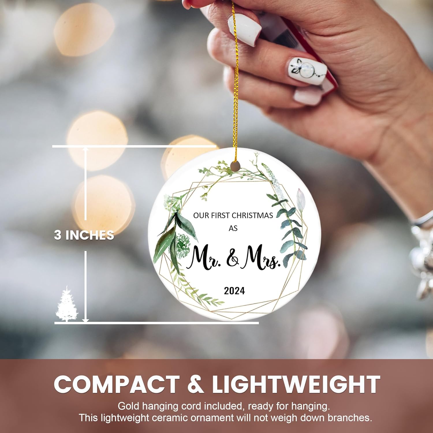 - Wedding Gifts for Newlyweds: Express your heartfelt wishes to the newlyweds with our wedding ornaments. It's an ideal token for wedding gifts, bridal showers gifts, or simply to celebrate the union of two souls. With "Our first Christmas as Mr & Mrs 2024" ornament makes it a cherished token of affection for any couple's special day
