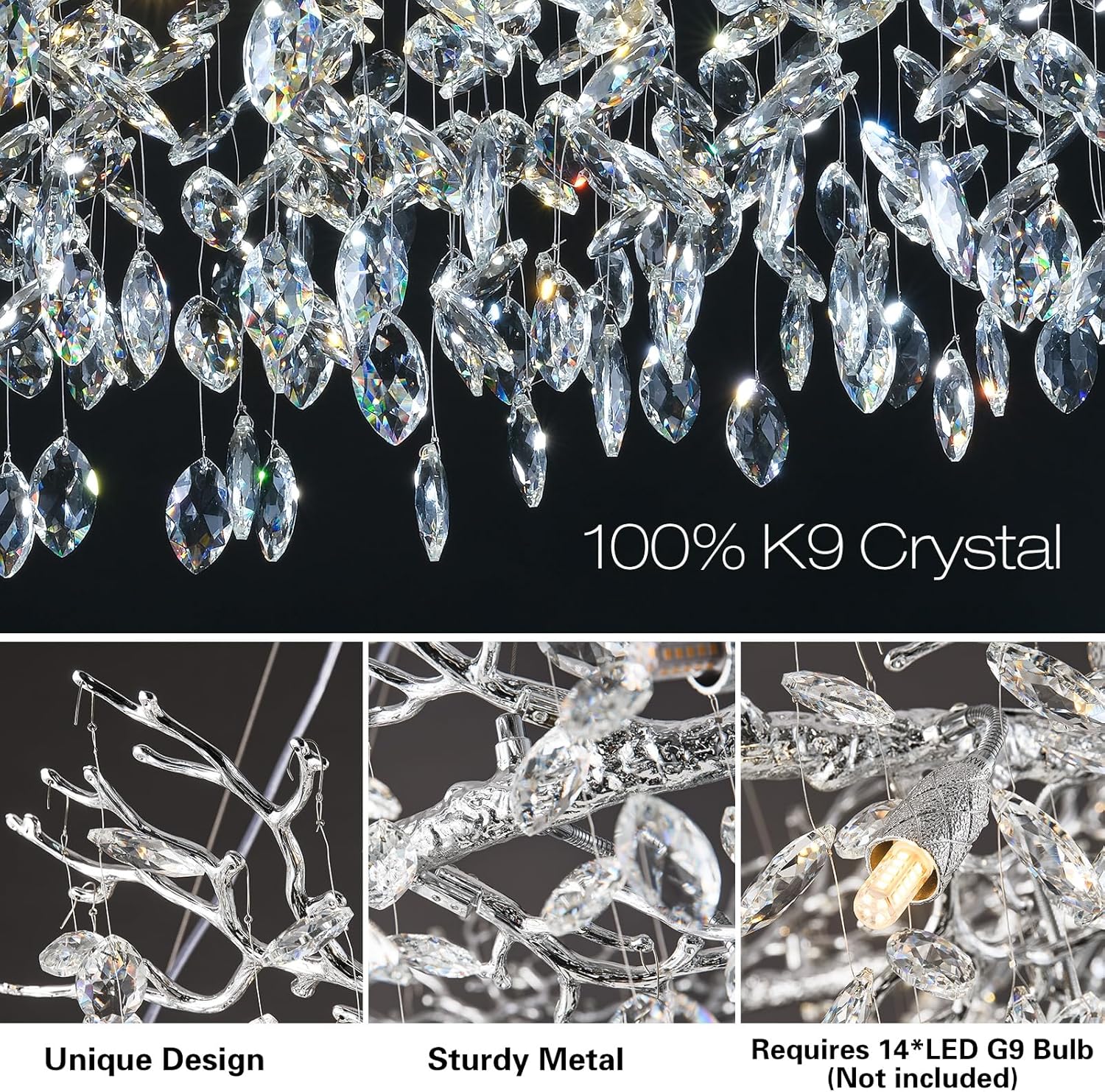 Modern Crystal Silver Chandelier,72" Large Rectangular Chandeliers for Dining Room, Tree Branch Crystal Lving Room Chandelier,Dining Room Over Table Chandelier,Fixture Height-Adjustable