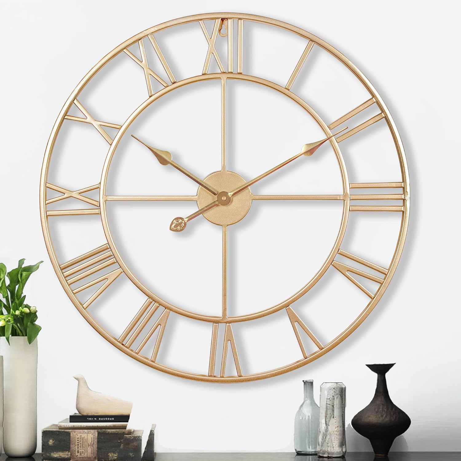- [Ideal Unique Gift Idea Analog Wall Clock]-Perfect blend of modern & vintage home decoration, this large roman numeral 24 inch wall clock fits most decor whether french country, modern farmhouse, vintage traditional classic, shabby chic, Elegant Mid-century. It can be a great house warming gift,Mother's Day Gift,Father's Day Gift or Christmas Gifts