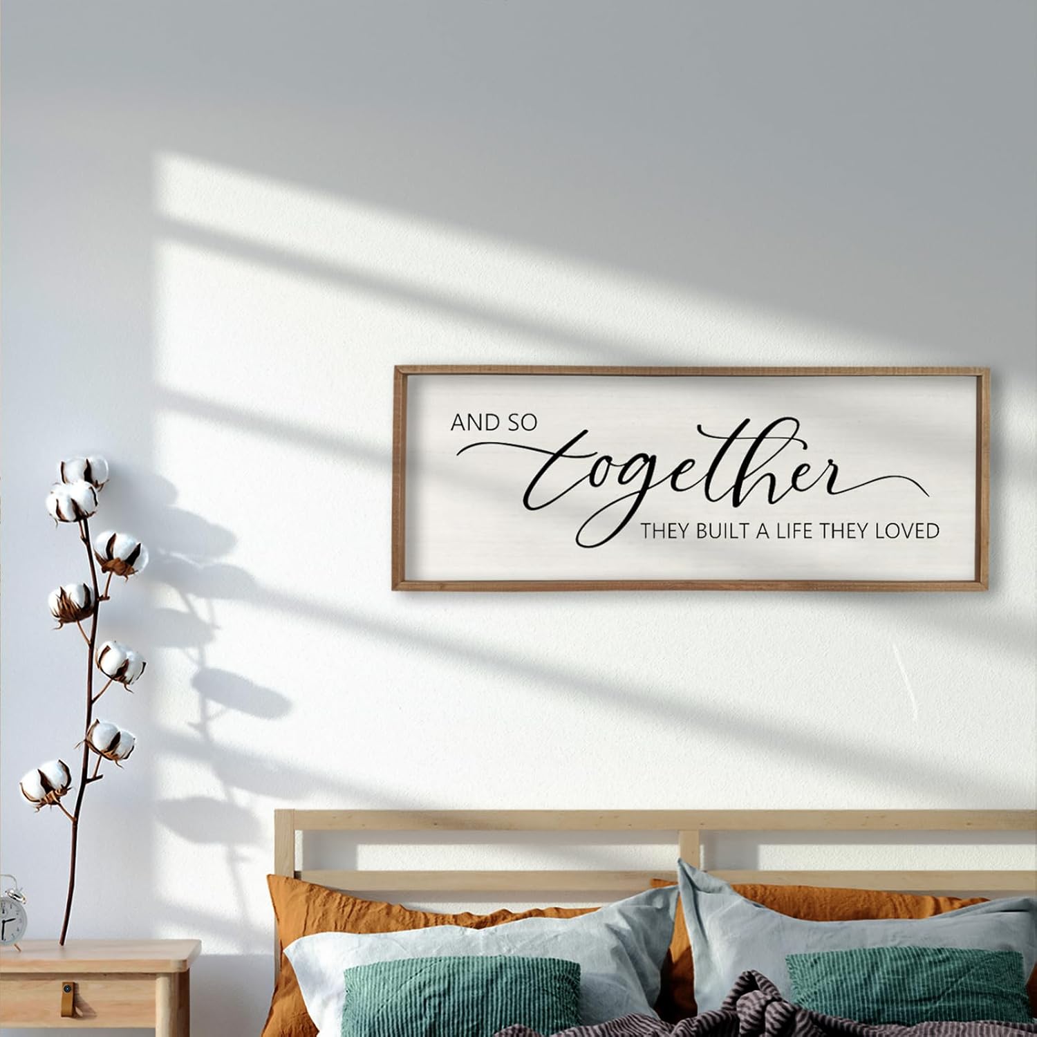 And So Together They Built A Life They Loved Sign 40”X15” Master Bedroom Above Bed Wall Decor Large Framed Wood Farmhouse Sign for Over Bed Bedside Wall Art for Love Sign Decor (Wood)