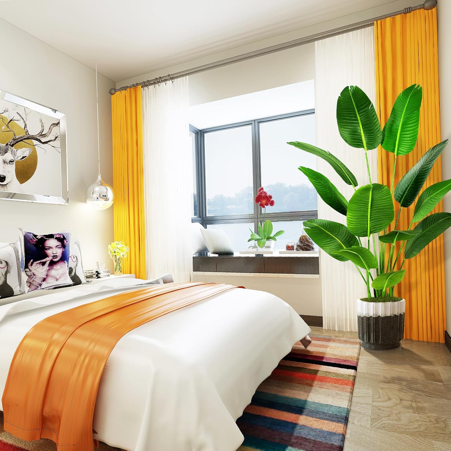 - 【STURDY AND ADJUSTABLE】 Our artificial silk bird of paradise palm tree outfitted with inner metal wires, you can adjust the leaves to the shape you like. This artificial plant will maintain its height, color and shape for years without pruning and shaping to ensure the aesthetic is maintained.