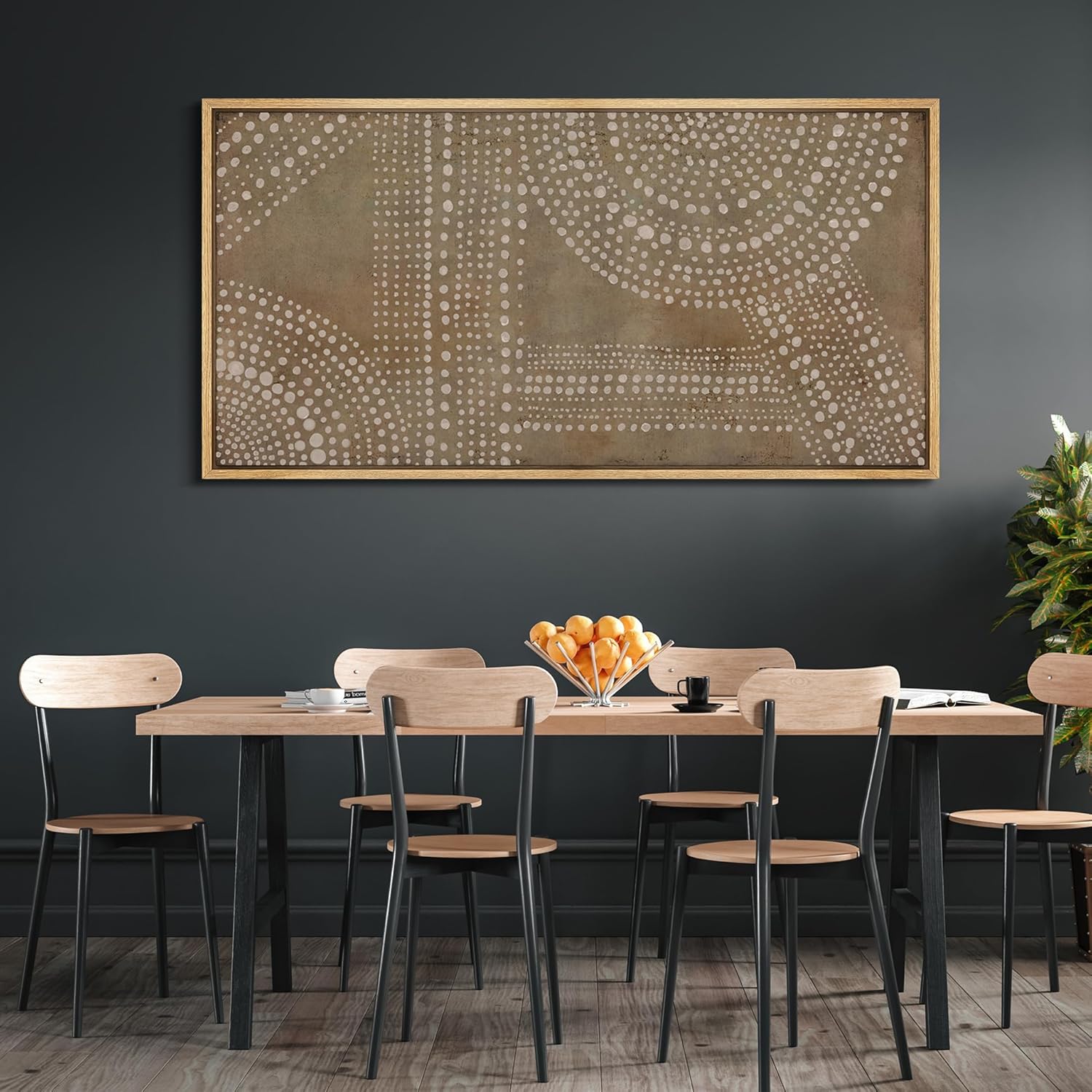 MUDECOR Extra Large Framed Canvas Print Wall Art Abstract Dot Matrix Canvas Art in Earth Tones Antique Retro Fine Art Illustrations Decorative Colorful for Bedroom - 60"x30"