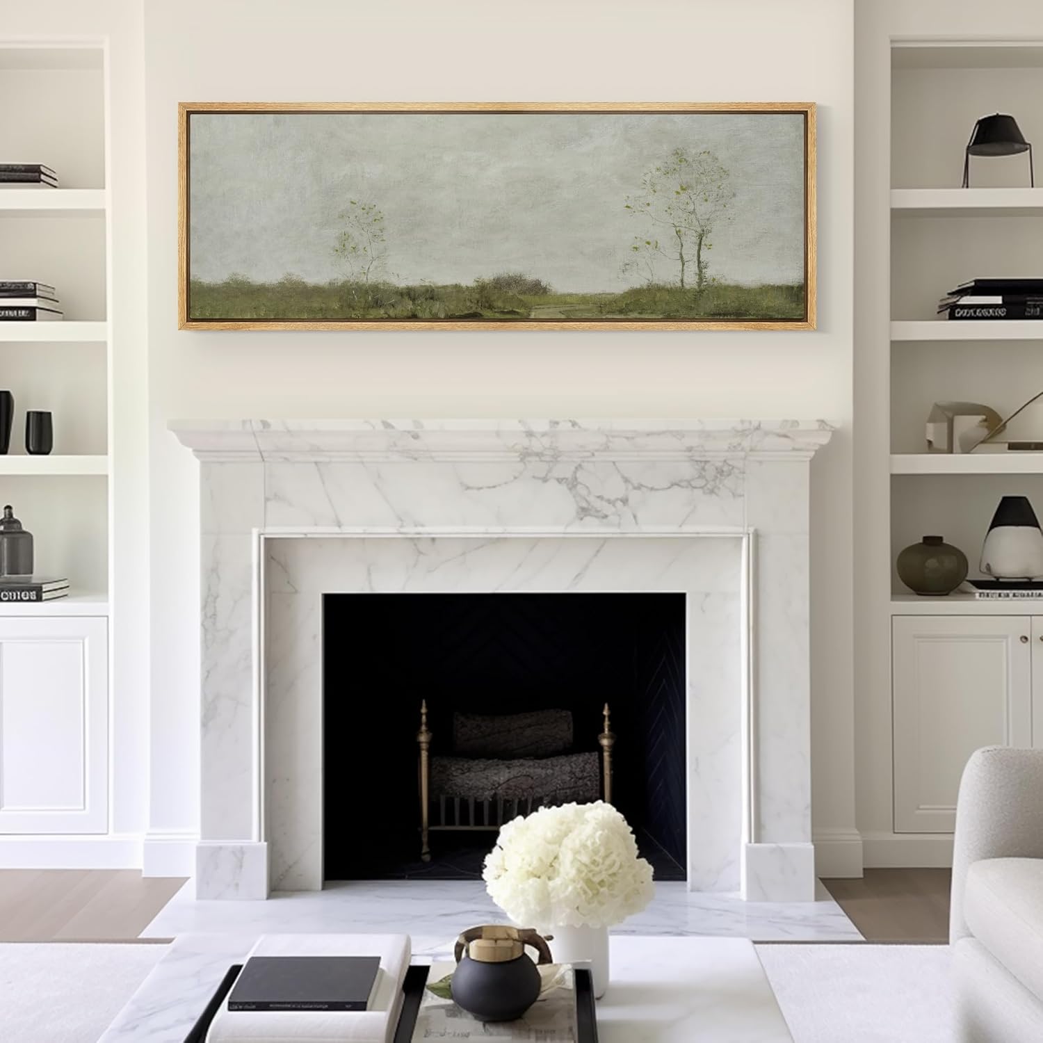 MUDECOR Large Framed Canvas Print Wall Art Soft Pastoral Landscape Wall Art with Trees Antique Retro Fine Art Illustrations Decorative Colorful for Bedroom - 60"x20"