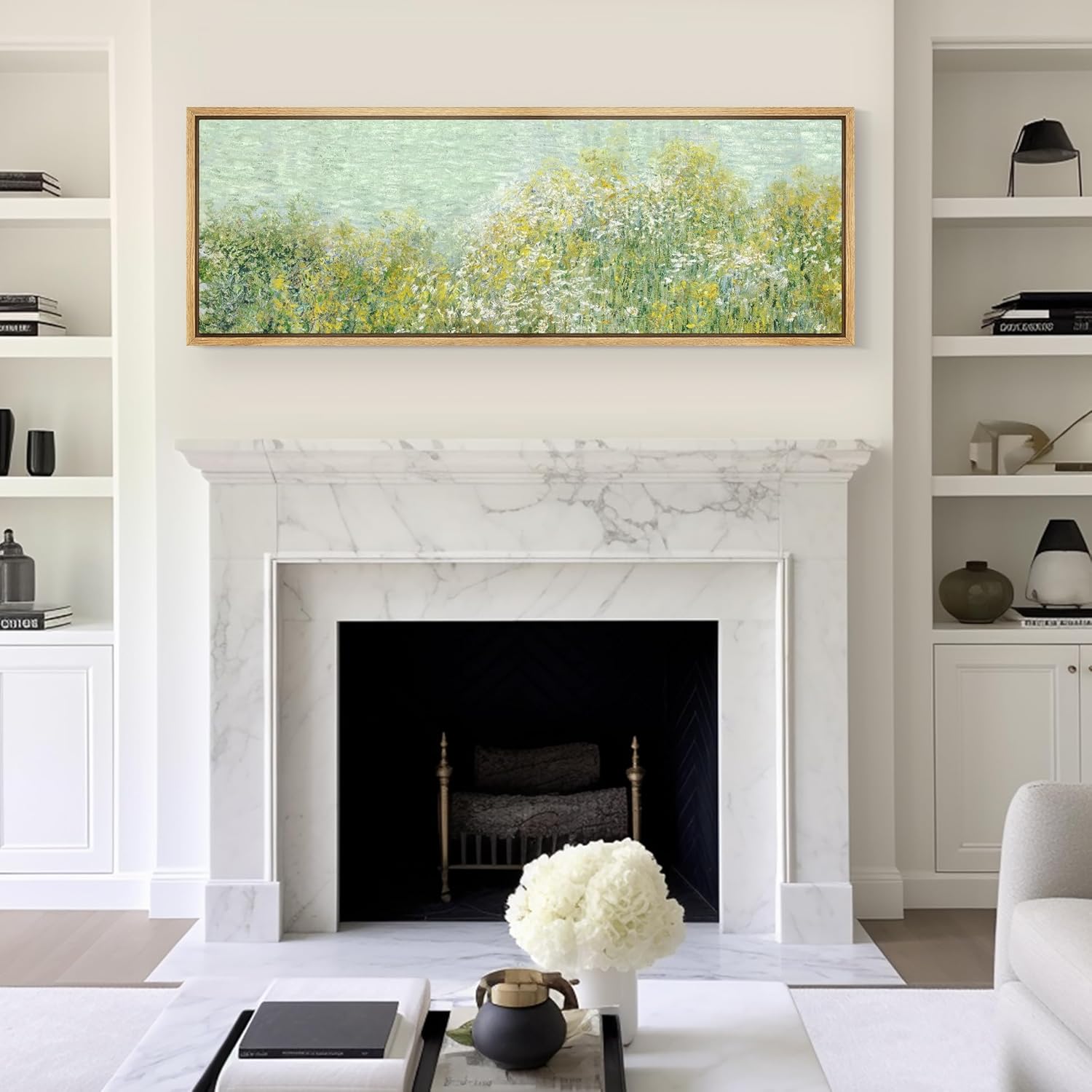 MUDECOR Large Framed Canvas Print Wall Art Lush Summer Garden with Blooming Trees Antique Retro Fine Art Illustrations Decorative Colorful for Bedroom - 60"x20"