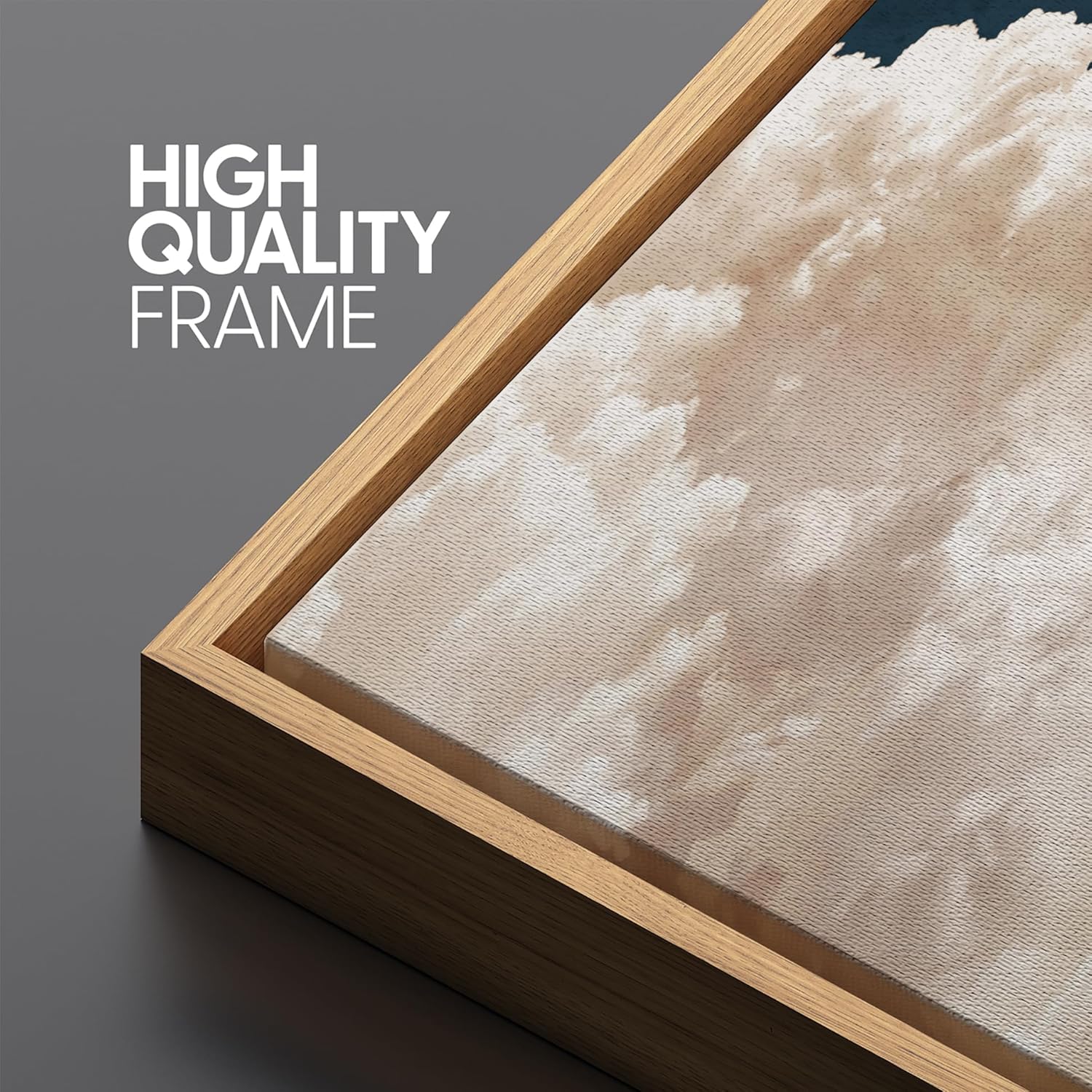 MUDECOR Large Framed Canvas Print Wall Art Cumulus Clouds Panoramic Dramatic Skyline Illustrations Antique Retro Fine Art Illustrations Decorative Colorful for Bedroom - 60"x20"