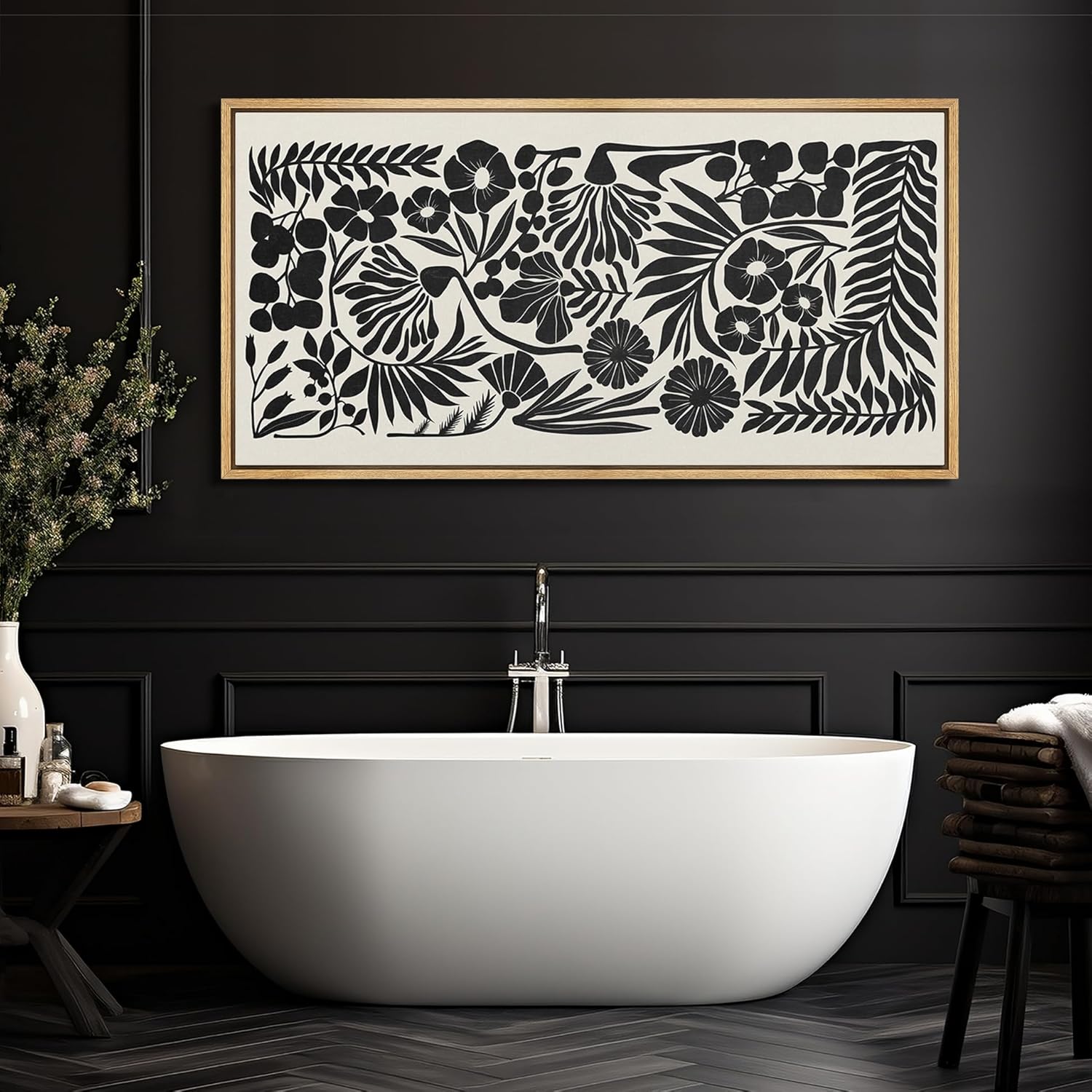 MUDECOR Extra Large Framed Canvas Print Wall Art Monochrome Botanicals Black and White Floral Illustrations Antique Retro Fine Art Illustrations Decorative Colorful for Bedroom - 60"x30"