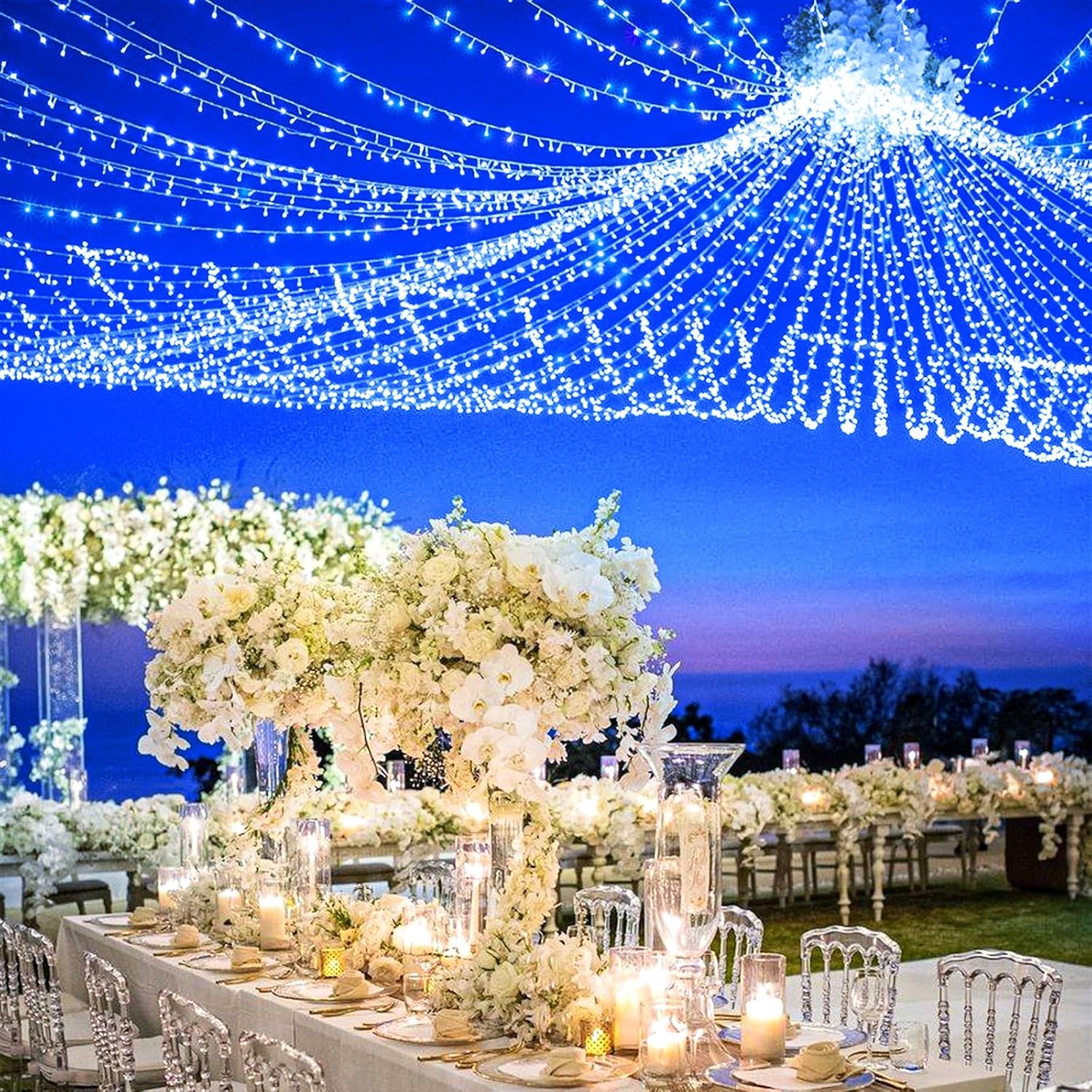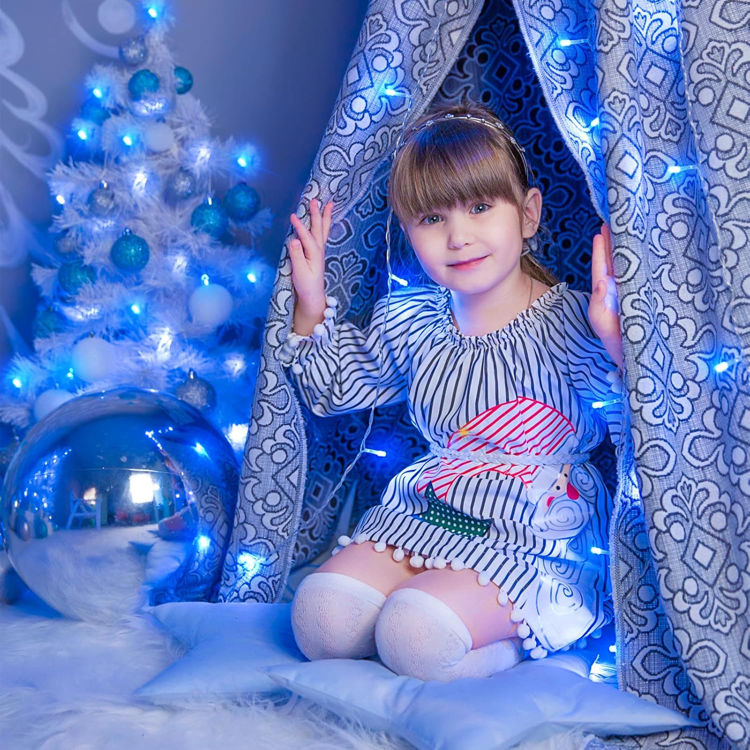 - Waterproof Fairy Lights: The blue Christmas lights design with IP44 outdoor waterproof, can withstand wind, snow, rain and extreme weather. String lights are equipped with a UL certified 29V low-voltage plug ensures the safety. It's safe for family with kids or pets!