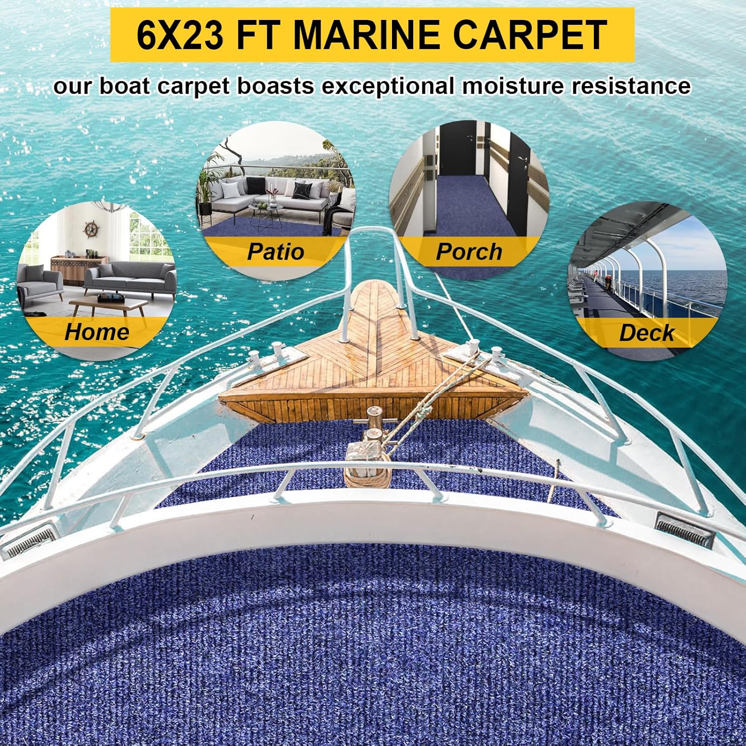 - Premium Indoor Outdoor Carpet: Color: Deep Blue; Size: 6 x 23 FT (1.8 x 7 m); Thickness: 0.2 in(5.0 mm). Crafted from high-quality polyester fibers, our boat carpet boasts exceptional moisture resistance, durability, shape retention, and colorfastness, ensuring a long-lasting and vibrant addition to your space.