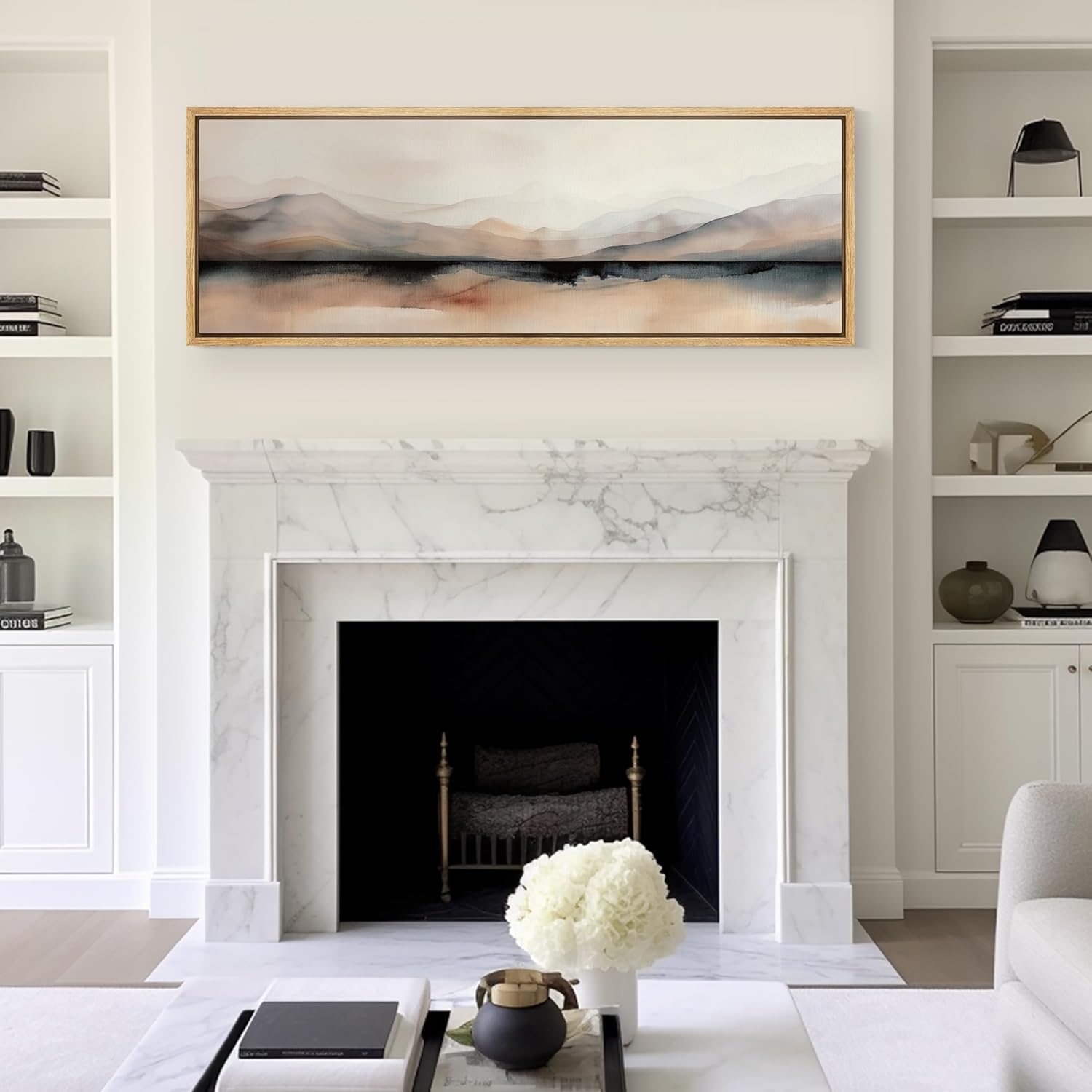 MUDECOR Large Framed Canvas Print Wall Art Abstract Mountain Hues Modern Minimalist Landscape Antique Retro Fine Art Illustrations Decorative Colorful for Bedroom - 60"x20"