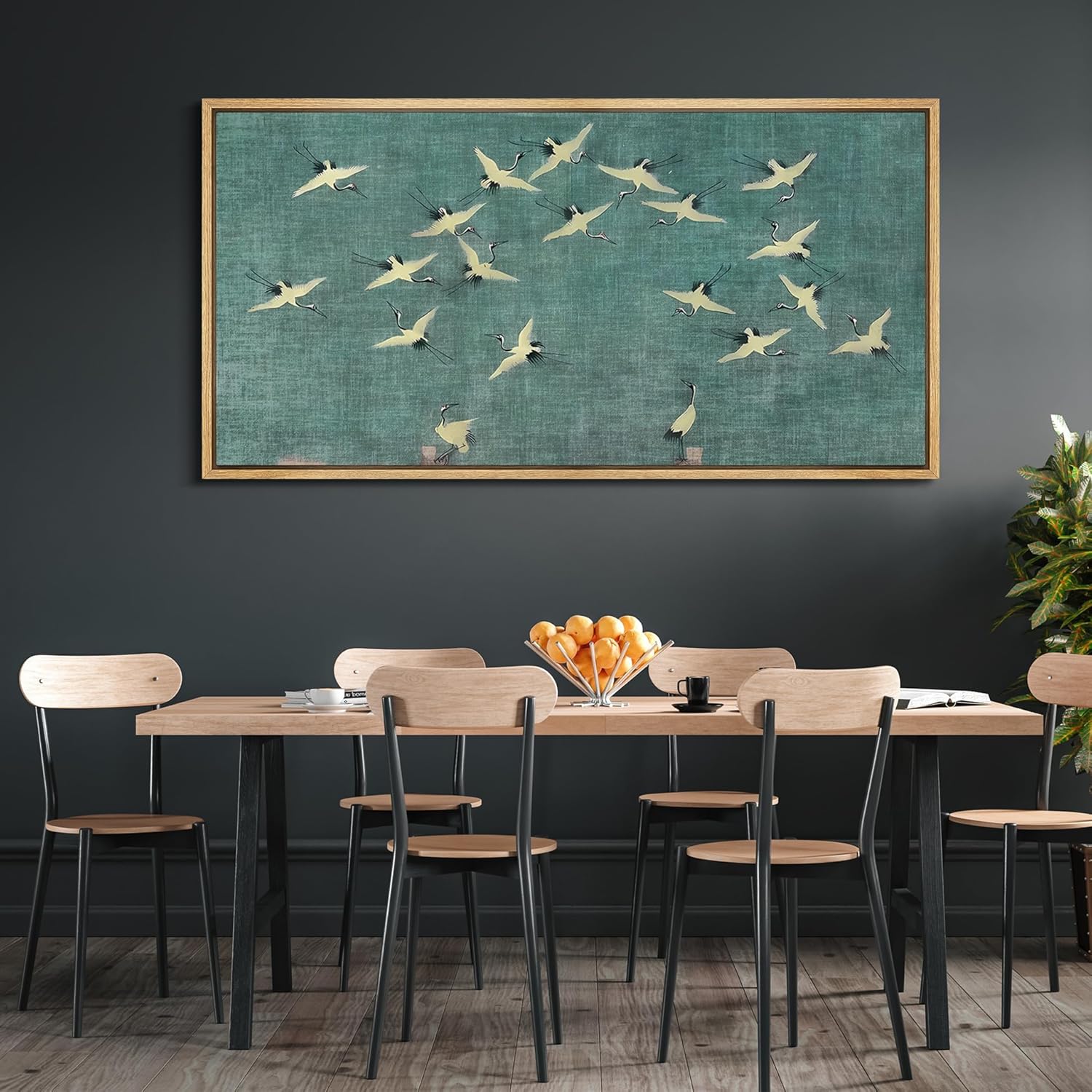MUDECOR Extra Large Framed Canvas Print Wall Art Serene Skies White Birds in Flight on Teal Antique Retro Fine Art Illustrations Decorative Colorful for Bedroom - 60"x30"