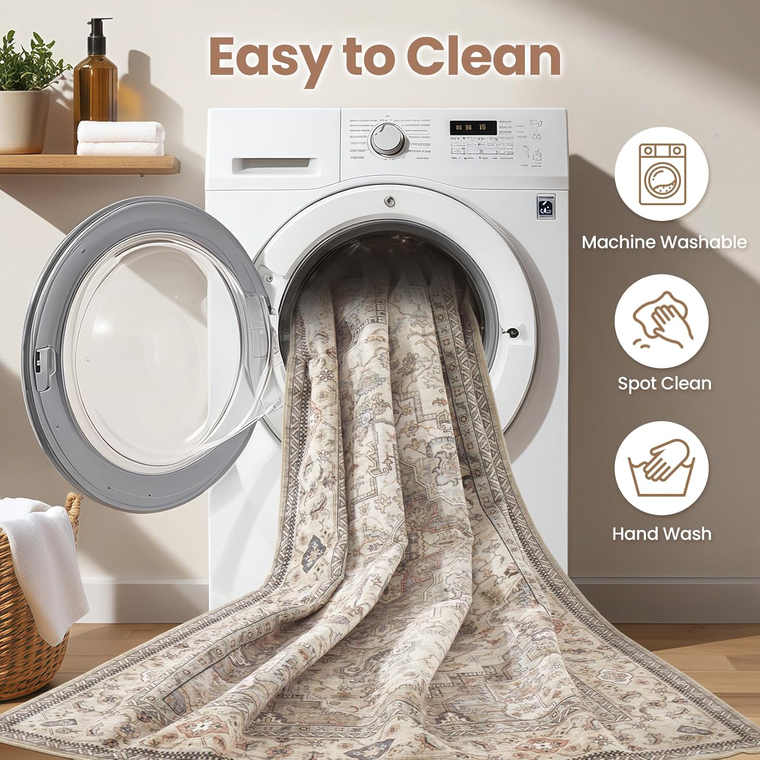 - Machine Washable Rug: The advantages of washable rug is that they are machine washable and easy to maintain, while 6x9 size and above are recommended to the nearby commercial laundry