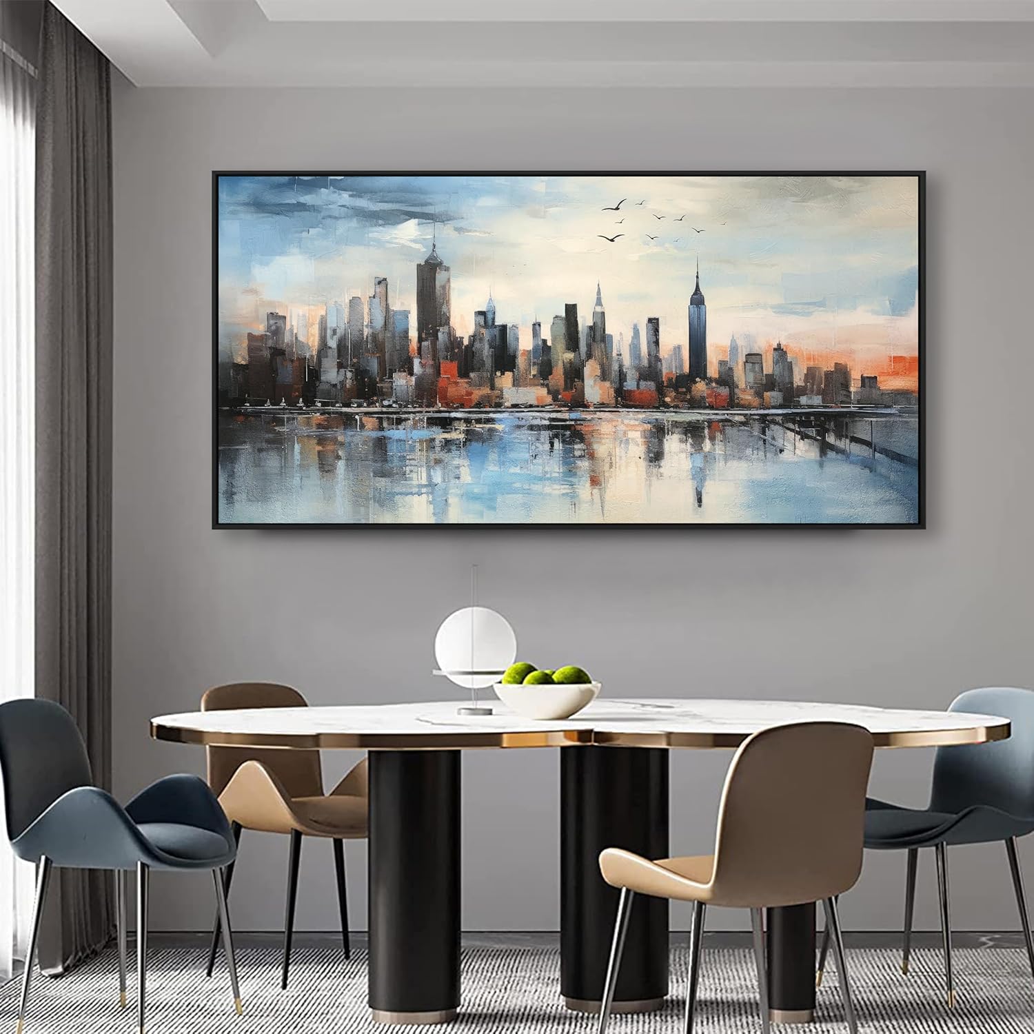 Wall Art Framed Abstract Cityscape Wall Decor Canvas Prints Blue Colorful City Theme Paintings Modern Artwork for Living Dining Room Bedroom Office Decoration 20"x40"
