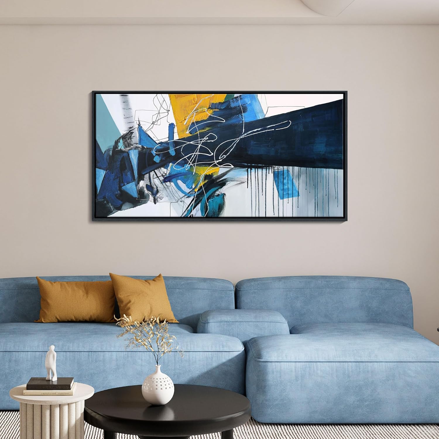 - Abstract wall art size:24x48 inches,black frame wall art for living room wall decor canvas picture artwork for wall.
