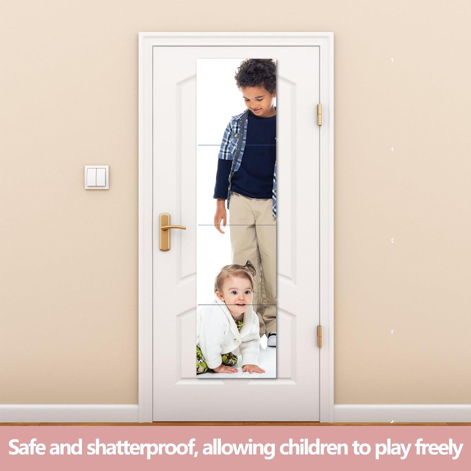 Unbreakable Wall Mirror Full Length,Over the Door Mirror for Bedroom,4Pcs 10inchx10inch Acrylic Mirror Kids,Shatterproof Plexiglass Long Mirrors,Children Non Glass Stick on Mirrors Tiles self adhesive