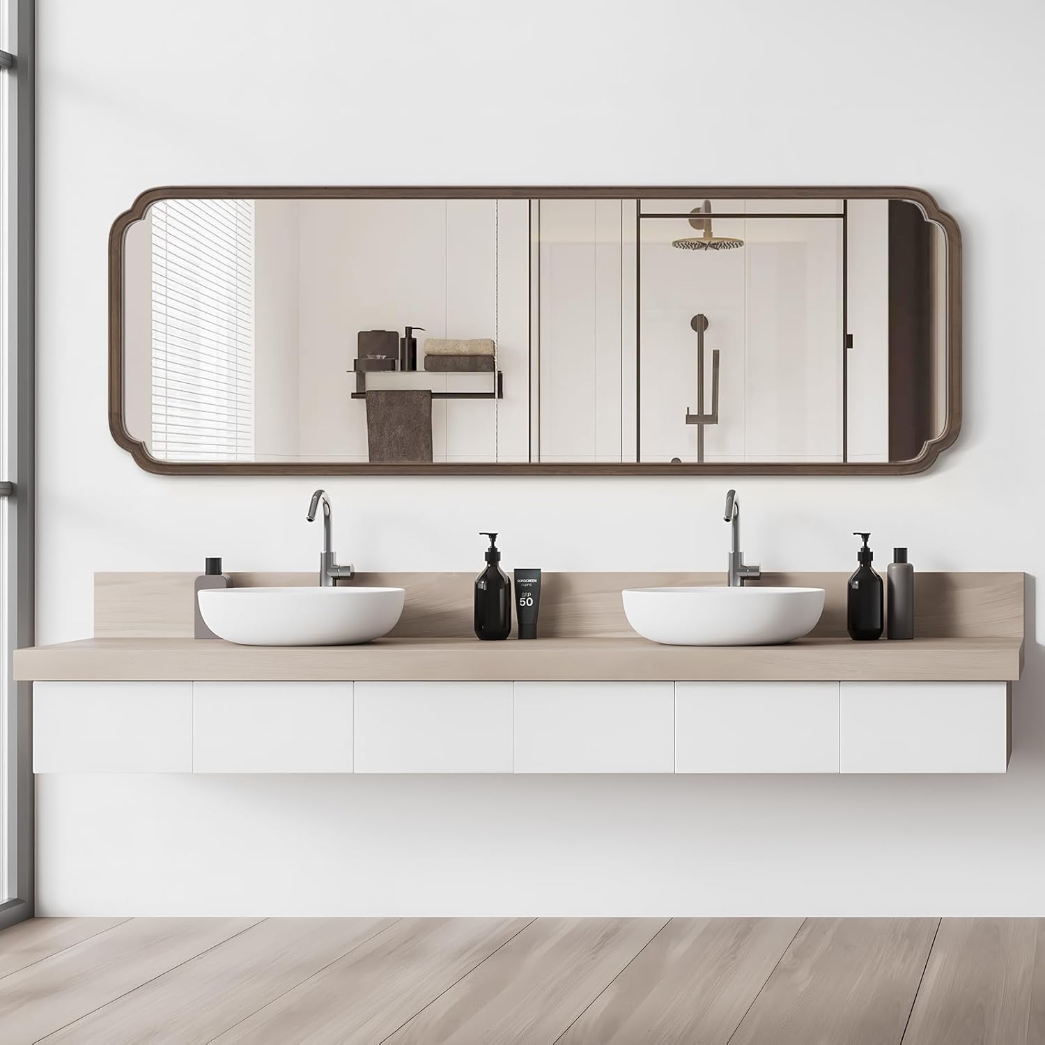 WallBeyond Full Length Mirror Wall Mounted 71"x24", Rustic Wooden Frame Floor Mirror, Large Full Body Mirror for Bedroom, Leaning or Hanging Against Wall (Walnut Solid Wood)