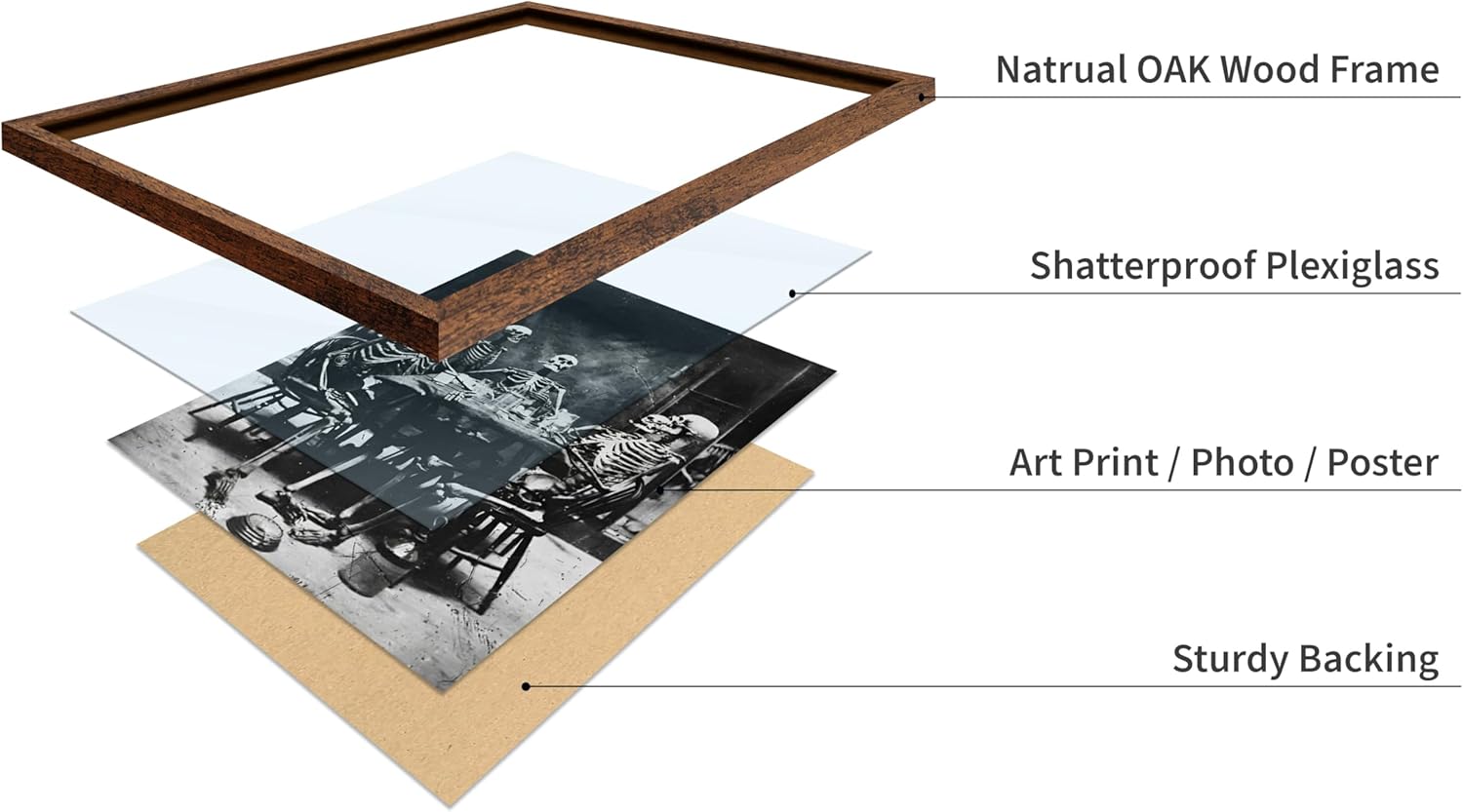 Poster Master Vintage Photograph Poster - Retro Daguerreotype Print - Gift for Artist, Friend - Skeletons Smoking at Table, Dinner Party, Goth - Wall Decor for Home, Dorm, 11x14 Brown Framed