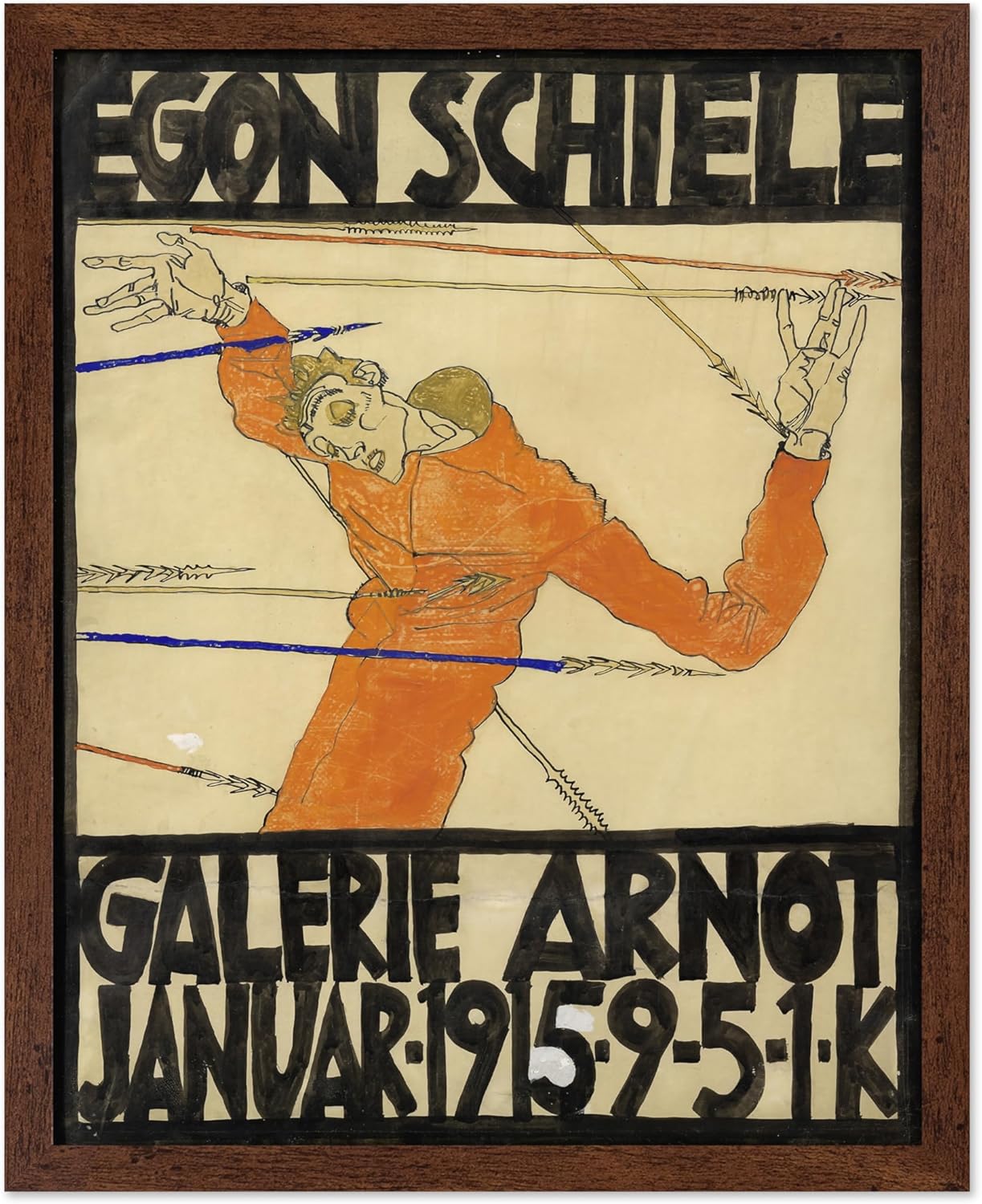 Poster Master Vintage Painting Poster - Retro Expressionism Print - Self Portrait as the Martyred St Sebastian - Gift for Artist, Friend - Wall Decor for Home, Office, 16x20 Brown Framed