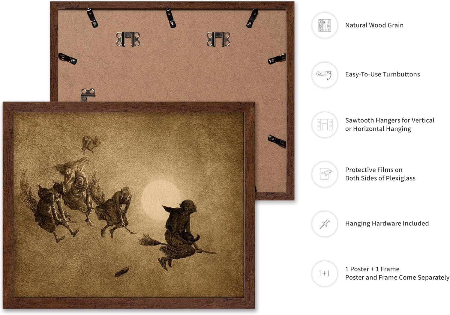 Poster Master Vintage William Holbrook Beard Poster - Retro Occult Print - Gift for Gothic, Horror Fan - The Witches Ride, Pagan, Goth, Magic - Wall Decor for Bedroom, Dorm, 8x10 Brown Framed