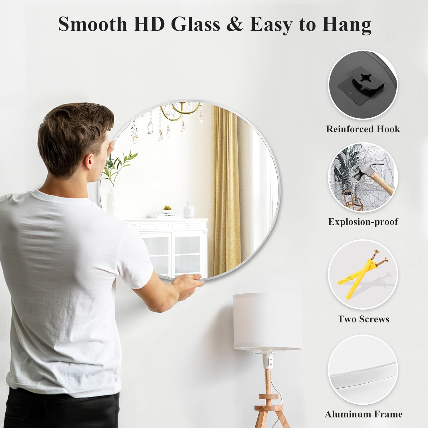 - Install is a Breeze - With the easy-followed instruction and complete accessories, you can install the modern mirror in a short time. What’s more, this circle mirror adopts explosion-proof glass, safe, waterproof and moisture-proof, that can use for long time and will not hurt your children