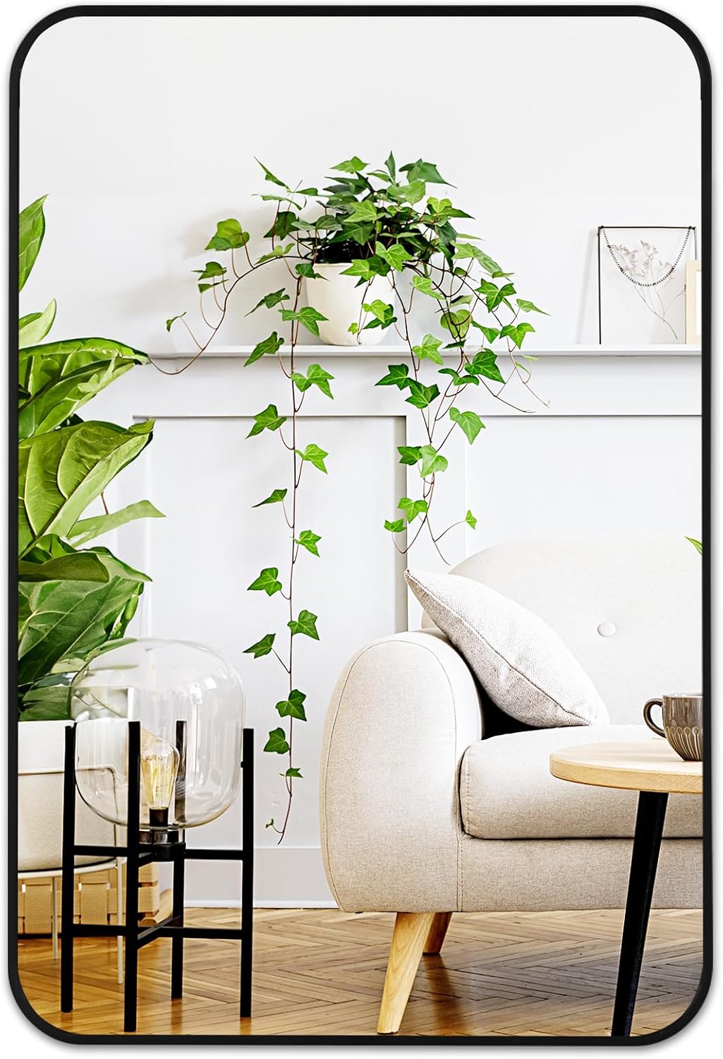 Fabuday Black Bathroom Mirror for Over Sink Wall - 24x36 Rectangle Mirror with Matte Metal Frame, Big Rounded Rectangular Vanity Mirrors for Bedroom, Living Room, Entryway, Horizontally/Vertically