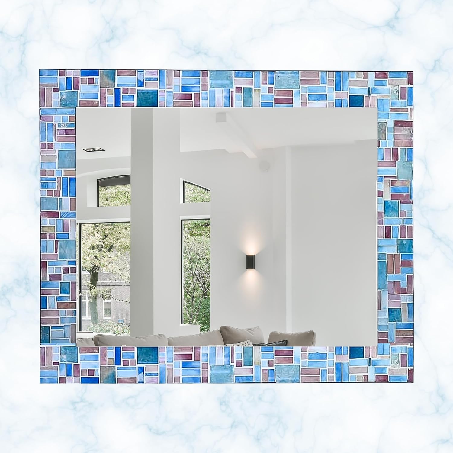- Versatile Décor Accent: Perfect for bathrooms, vanity, living rooms, bedrooms, or entryways, this mosaic mirror effortlessly enhances any interior with its timeless elegance and reflective charm.
