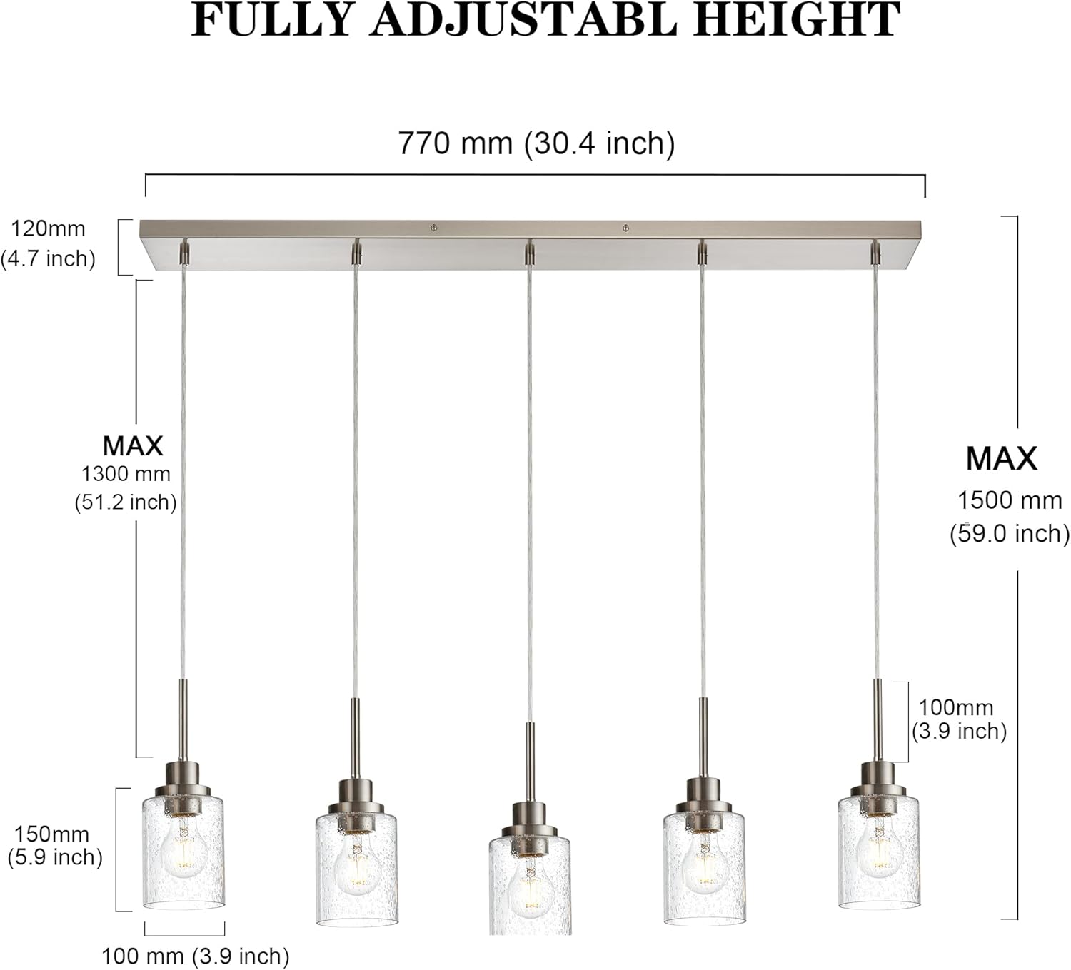 - Adjustable Length: The chandelier features adjustable wires, enabling you to customize the height to fit your space perfectly. Ideal for dining rooms, kitchen islands, foyers, and more.