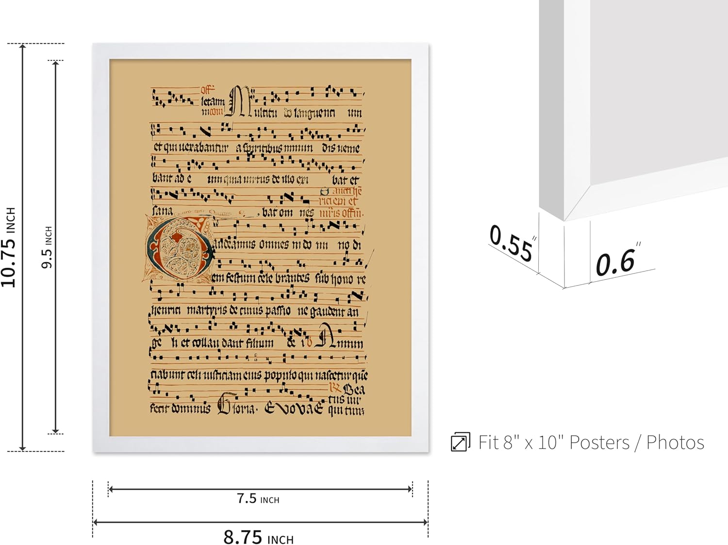 Poster Master Vintage Hymnal Poster - Retro Music Print - Gift for Artist, Friend - Graduale Aboense, Gregorian Chant Manuscript, Score - Wall Decor for Living Room, Bedroom, 8x10 White Framed