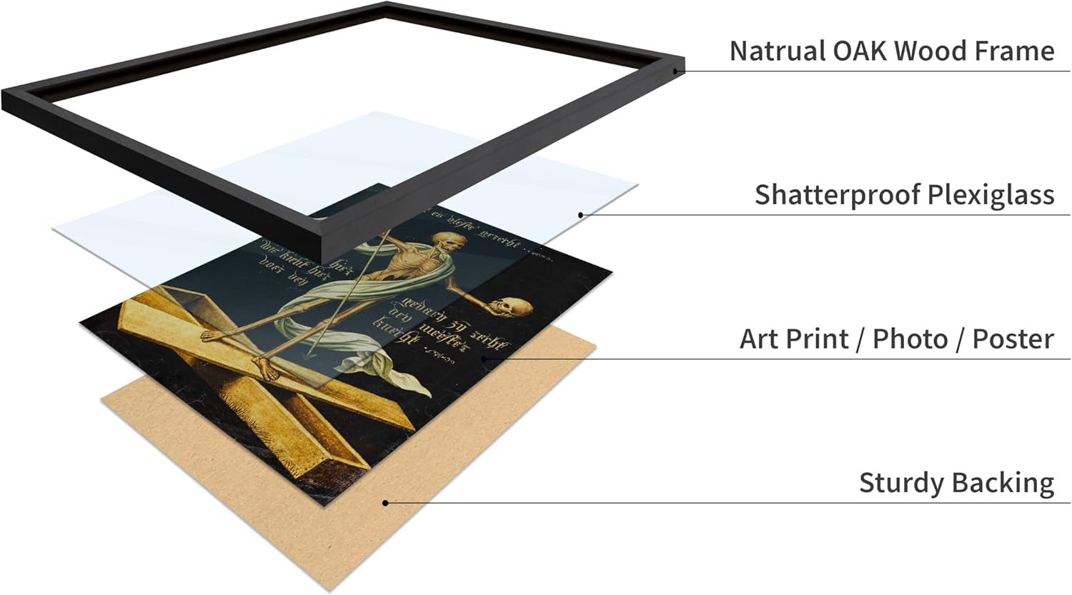 Poster Master Vintage Medieval Poster - Retro Gothic Print - Gift for Artist, Friend - Allegory of Life and Death, Skeleton, Dark, Skull - Wall Decor for Home, Living Room, 11x14 Black Framed
