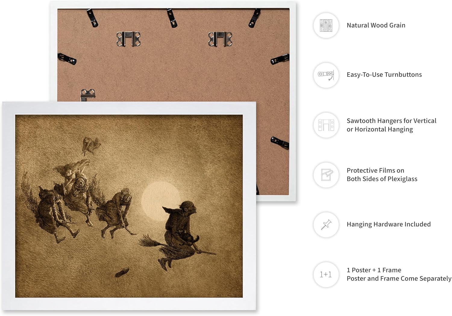 Poster Master Vintage William Holbrook Beard Poster - Retro Occult Print - Gift for Gothic, Horror Fan - The Witches Ride, Pagan, Goth, Magic - Wall Decor for Bedroom, Dorm, 11x14 White Framed