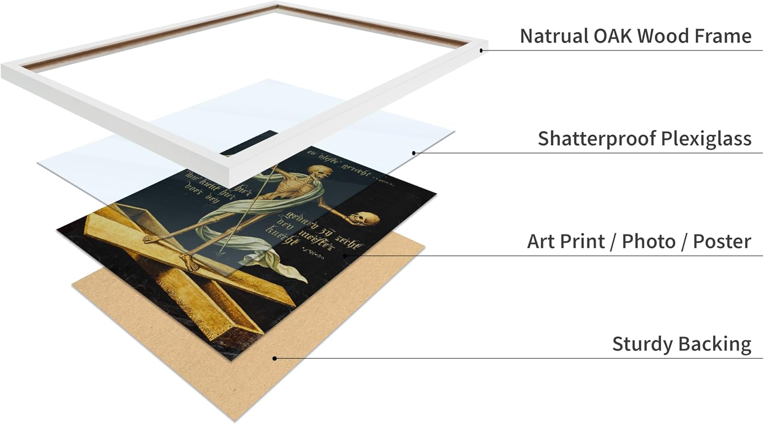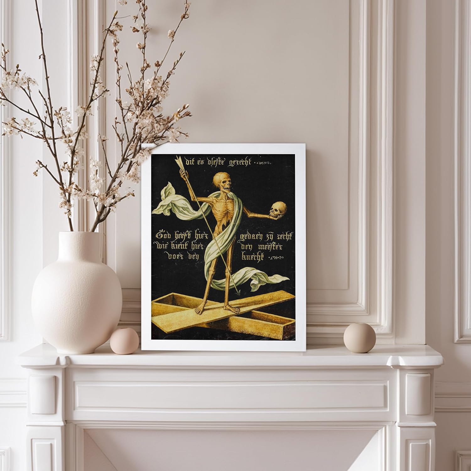 Poster Master Vintage Medieval Poster - Retro Gothic Print - Gift for Artist, Friend - Allegory of Life and Death, Skeleton, Dark, Skull - Wall Decor for Home, Living Room, 11x14 White Framed