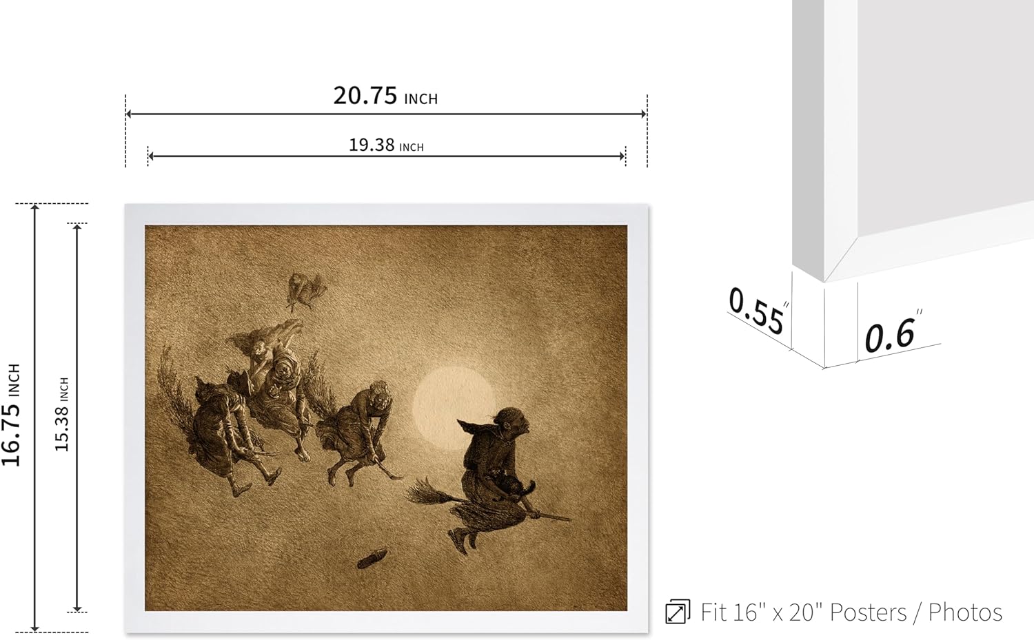 Poster Master Vintage William Holbrook Beard Poster - Retro Occult Print - Gift for Gothic, Horror Fan - The Witches Ride, Pagan, Goth, Magic - Wall Decor for Bedroom, Dorm, 16x20 White Framed