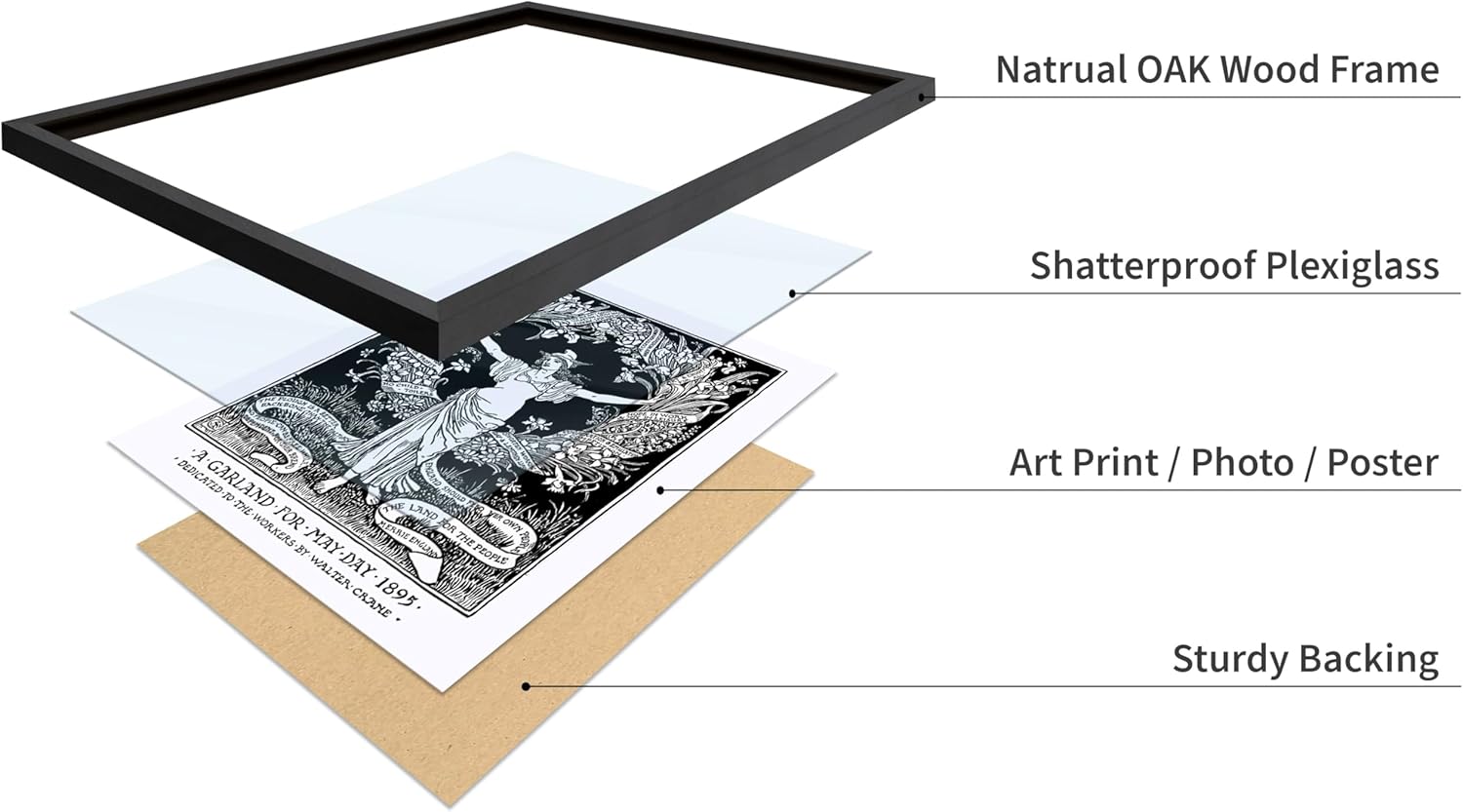 Poster Master Vintage Walter Crane Poster - Retro A Garland for May Day Print - Socialist Art - Gift for Him, Her, Men, Women - Wall Decor for Home, Office, Living Room, 16x20 Black Framed