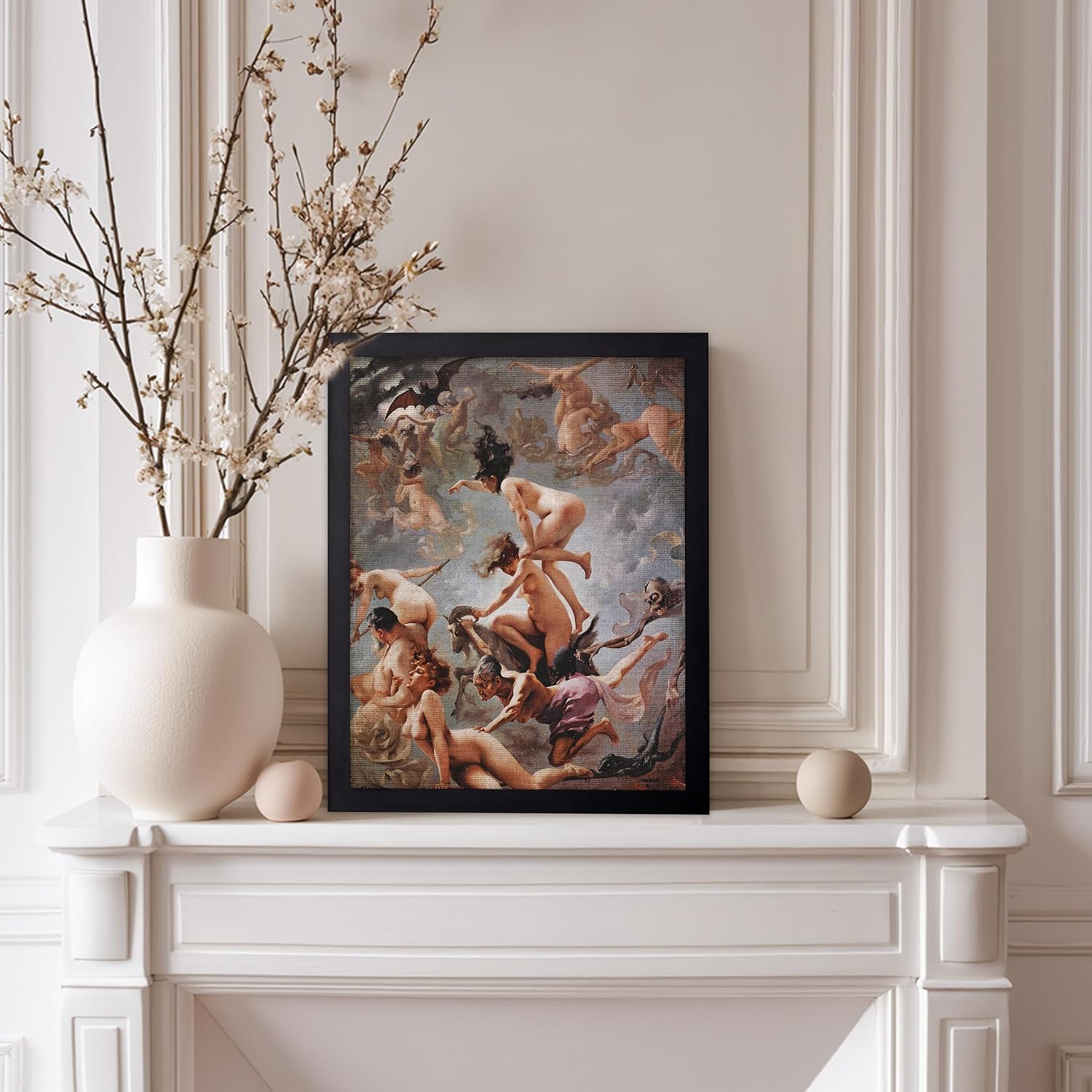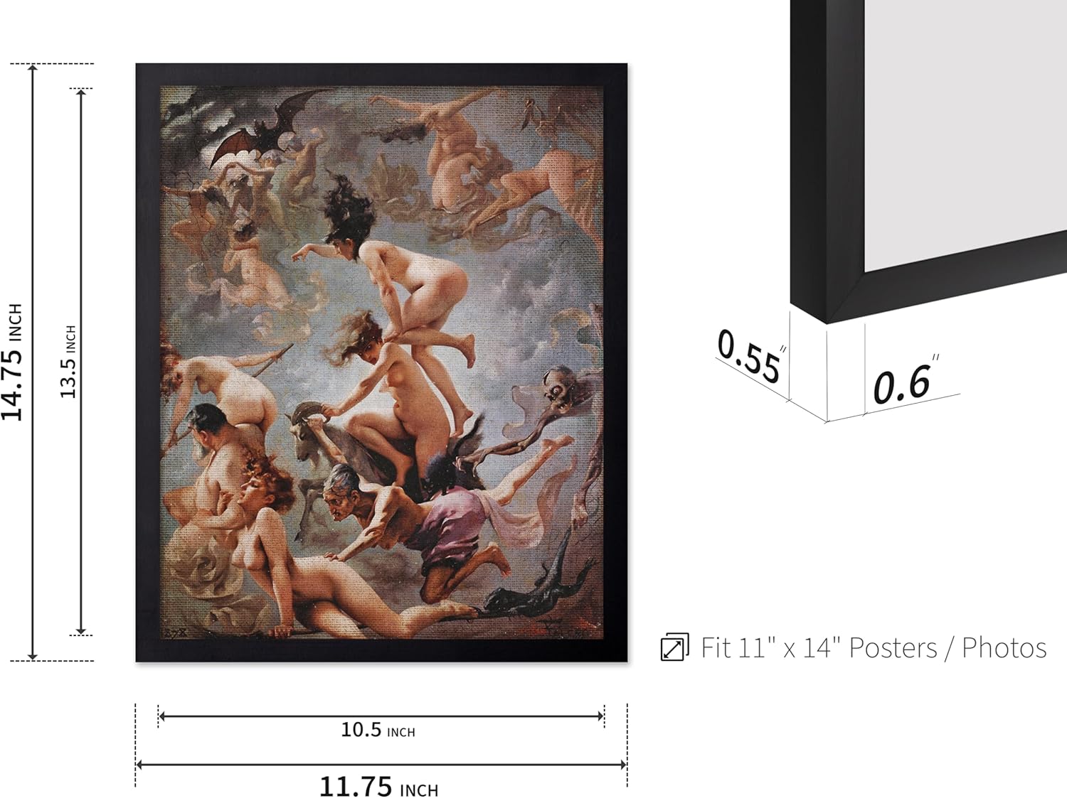 Poster Master Vintage Luis Ricardo Falero Poster - Retro Occult Print - Gift for Gothic, Horror Fan - Witches Going to their Sabbath, Pagan - Wall Decor for Bedroom, Dorm, 11x14 Black Framed
