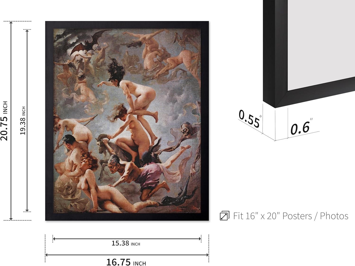 Poster Master Vintage Luis Ricardo Falero Poster - Retro Occult Print - Gift for Gothic, Horror Fan - Witches Going to their Sabbath, Pagan - Wall Decor for Bedroom, Dorm, 16x20 Black Framed