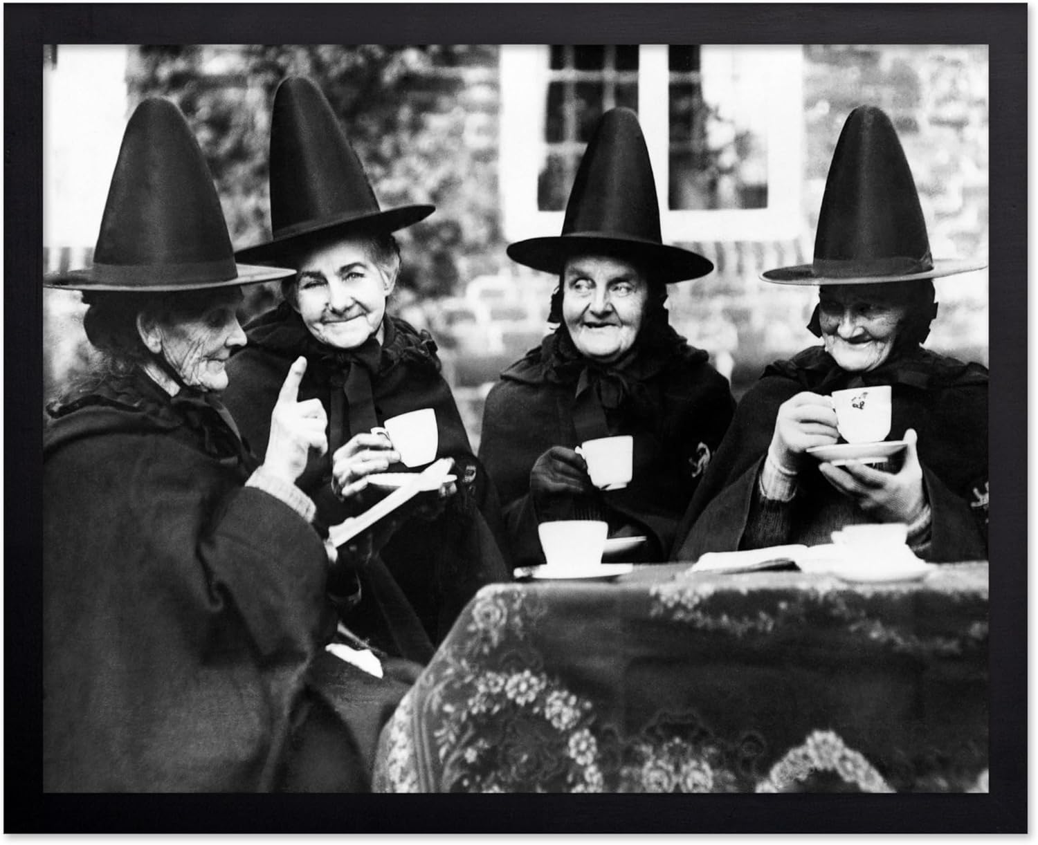 Poster Master Classic Photograph Poster - Vintage Halloween Print - Gift for Artist, Friend - Witches Tea Party, Old Women Smiling, Wearing Robes - Wall Decor for Living Room, 8x10 Black Framed
