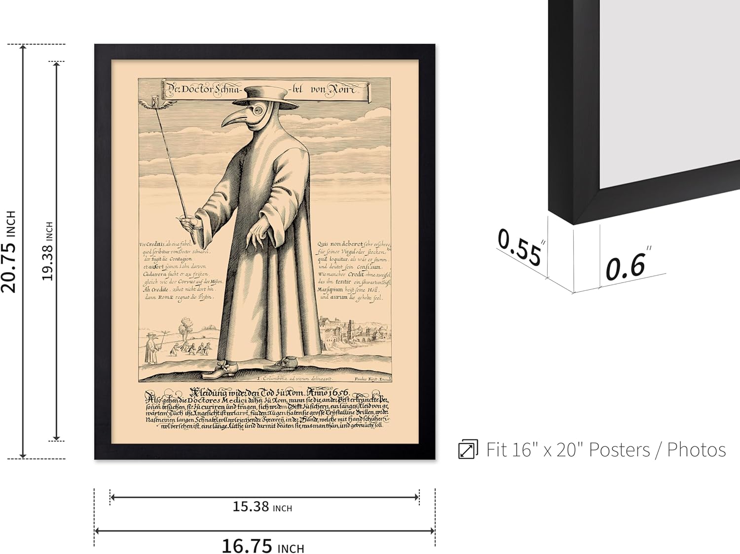 Poster Master Vintage Medieval Poster - Retro Illustration Print - Gift for Friend - Plague Doctor, Pandemic Mask, Physician, Black Death - Wall Decor for Home, Living Room, 16x20 Black Framed