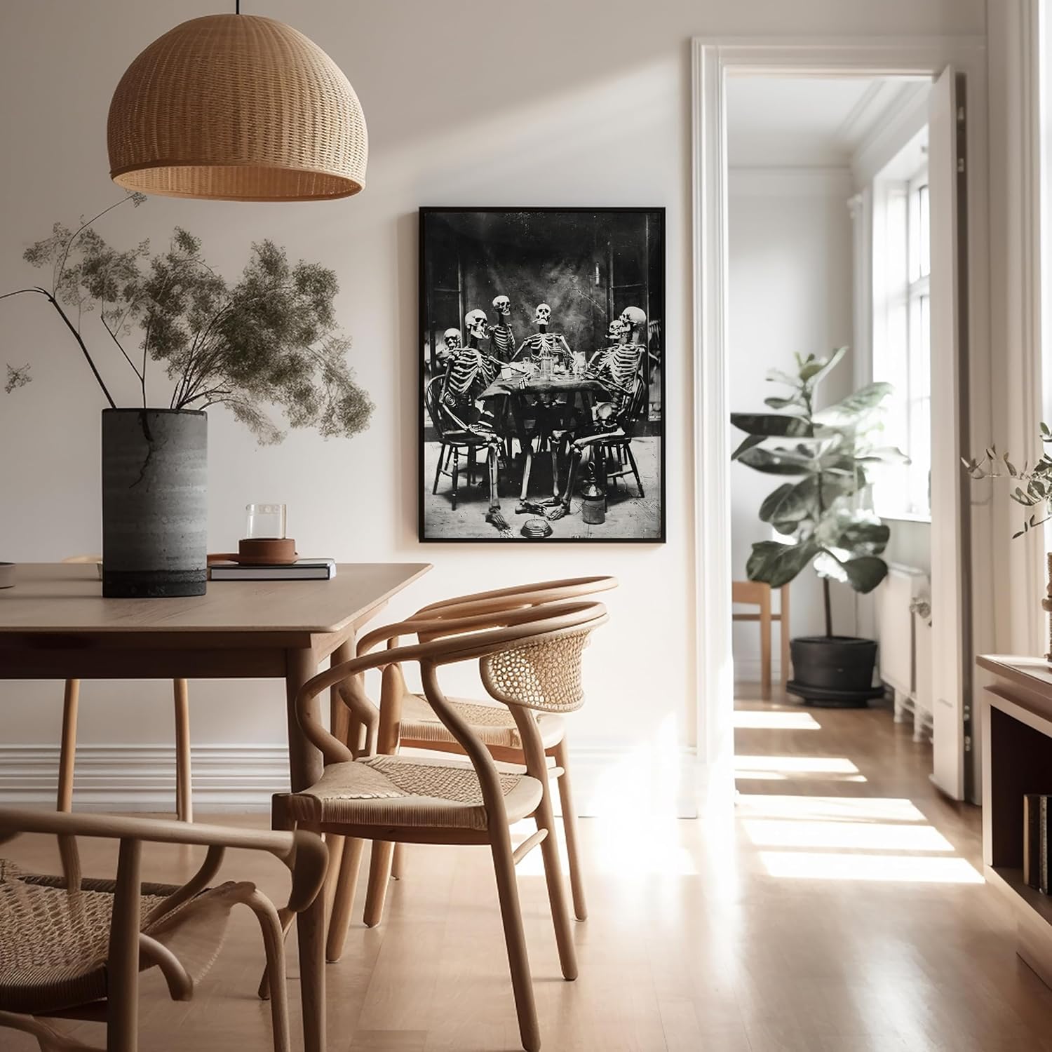 Poster Master Vintage Photograph Poster - Retro Daguerreotype Print - Gift for Artist, Friend - Skeletons Smoking at Table, Dinner Party, Goth - Wall Decor for Home, Dorm, 18x24 Unframed Wall Art