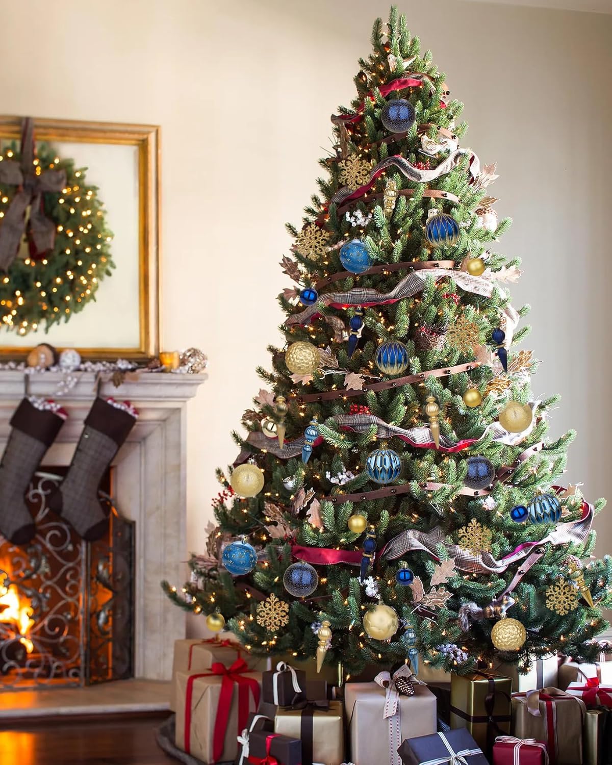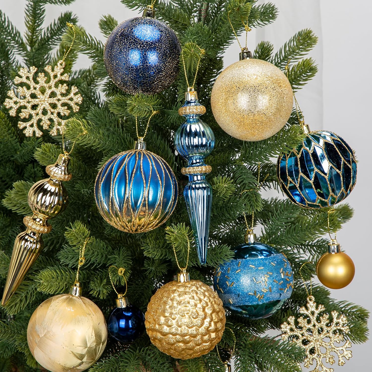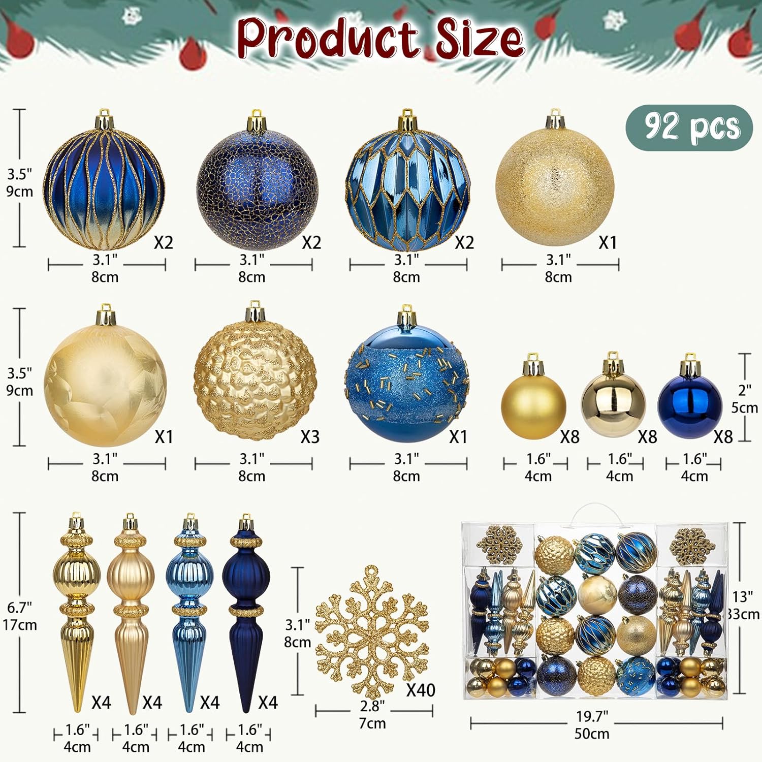 - COMPLETE 92-PIECE SET – Each Christmas ornament set includes 92 carefully selected pieces in various sizes and designs, including classic round balls, intricate finials, glittery snowflakes, and mini baubles. This complete collection allows you to decorate your entire Christmas tree with a perfectly coordinated look